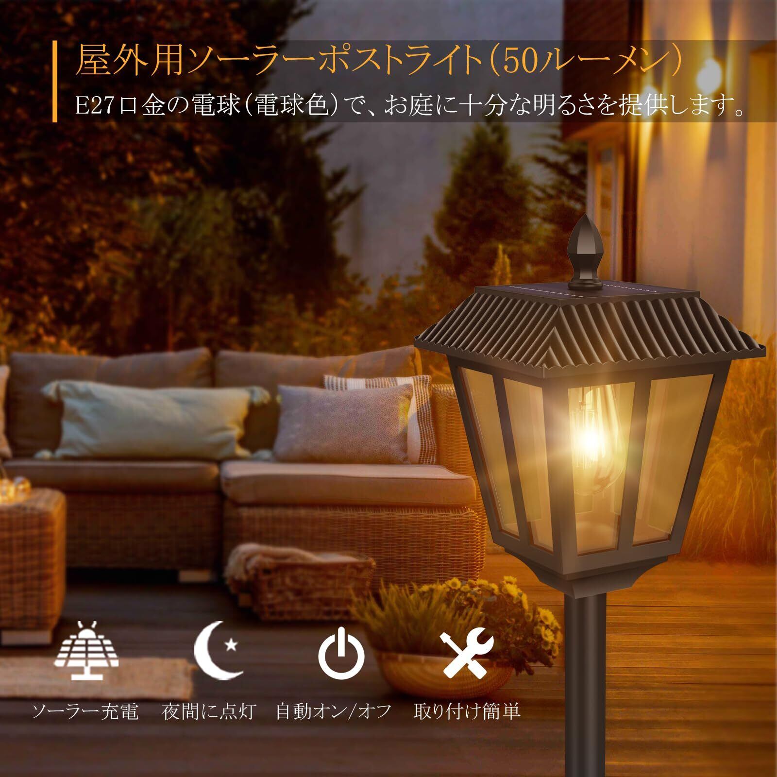 【配線不要・簡単設置】高効率なソーラーガーデンライト:配線工事は不要、地面に差し込むだけで簡単に設置可能。日中は太陽光で充電し、夜間は自動で点灯します。最大50ルーメンの明るさで、玄関先やお庭にやさしい光を灯し、温かみのある雰囲気を演出します。エコで経済的なガーデンライト 屋外用としておすすめです。