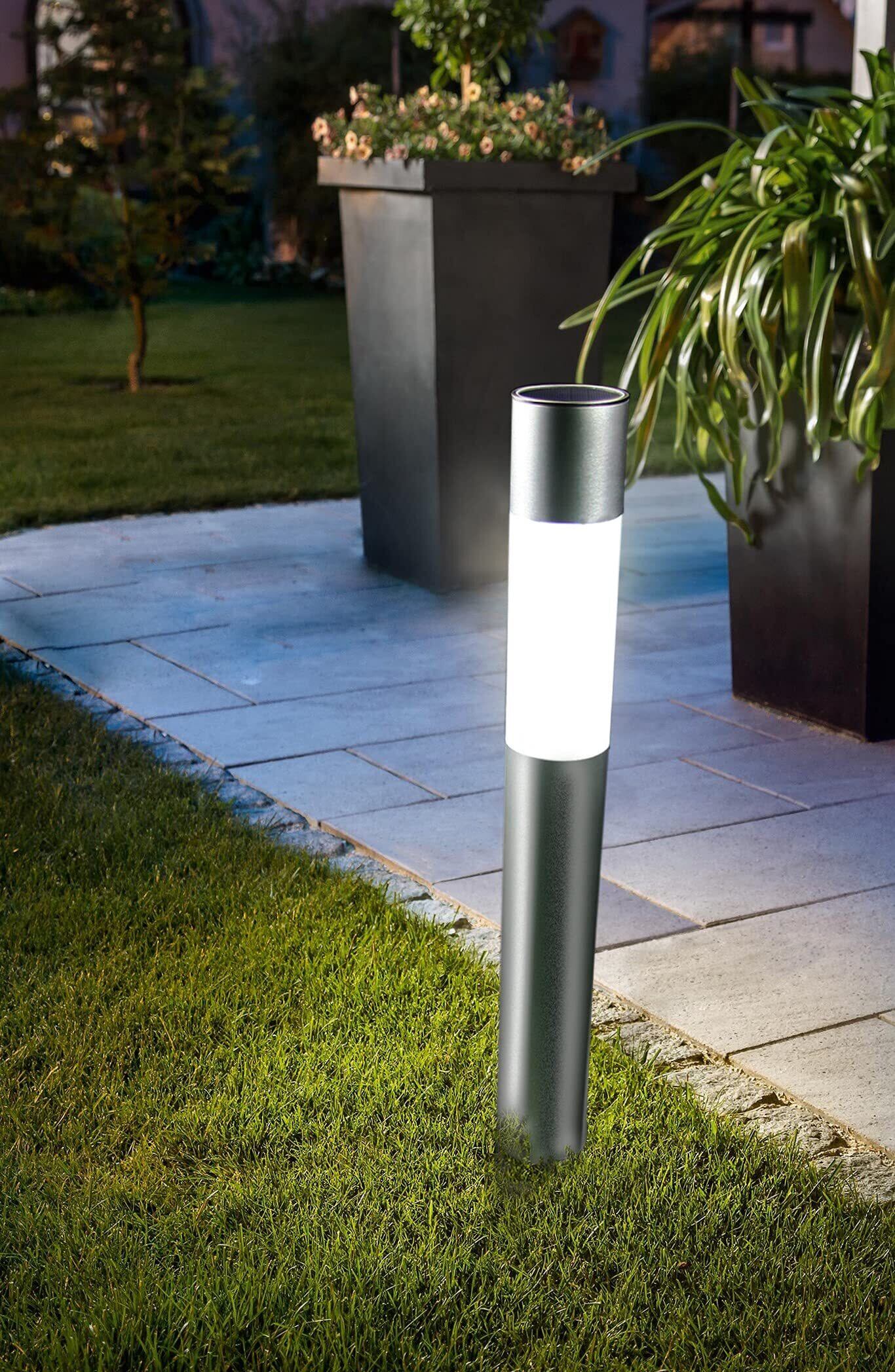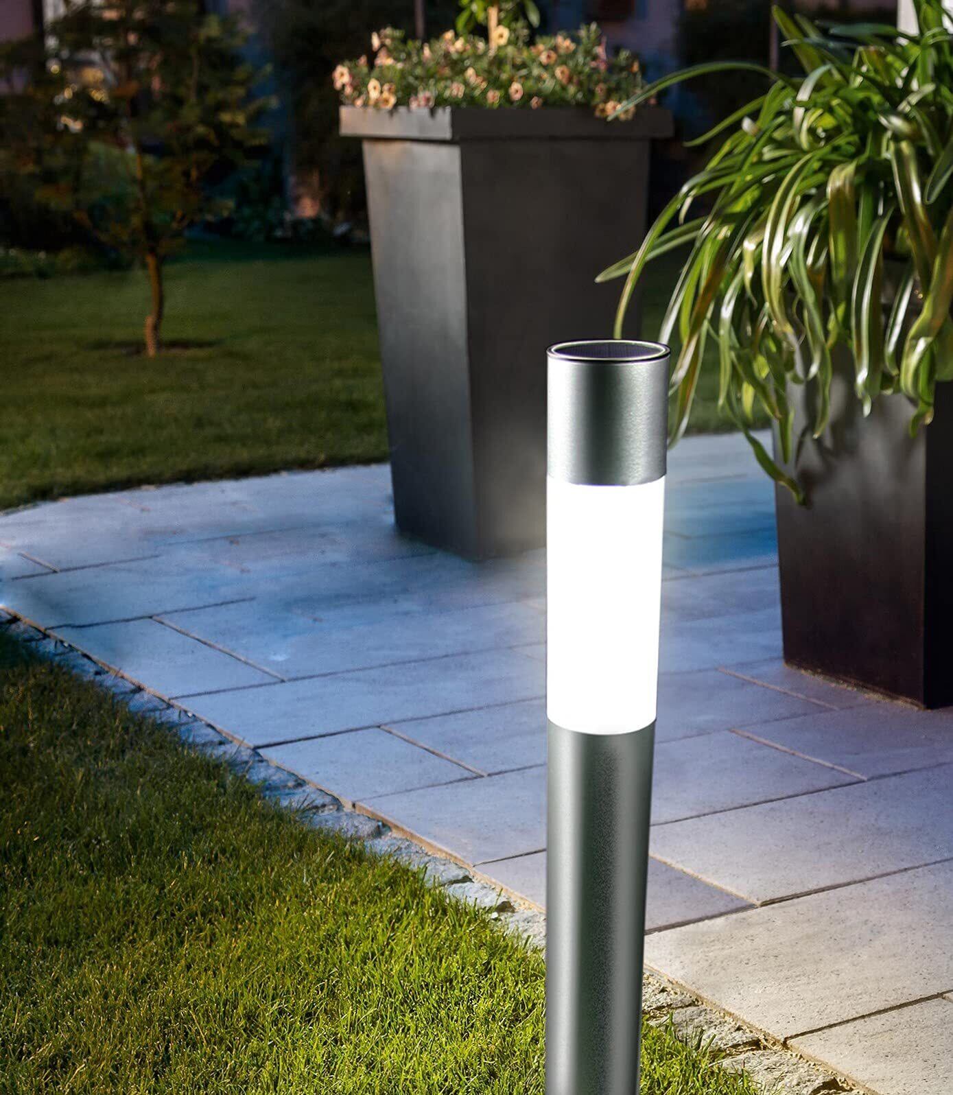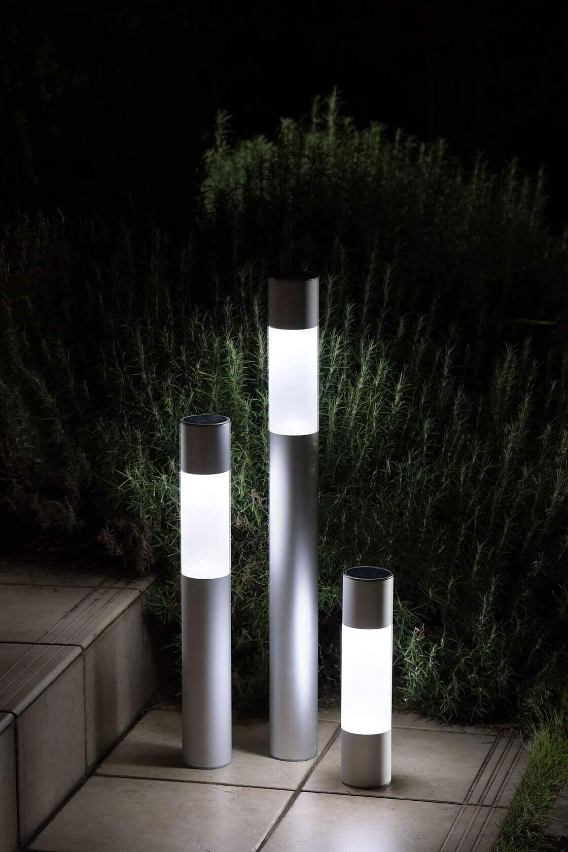 GWSOLAR【スタイリッシュモダンな光/ソーラーライト/ 直径7㎝、高さ50㎝アルミポール】【ポール本体色:シルバー】ホワイト色・電球色スイッチで切替、IPX4、配線・電気工事不要/GWソーラー アルミアプローチポールライト、高さ 50cm、自動点灯・自動消灯、簡単設置・ネジ止め・挿し込み可、お庭/玄関先/階段/デッキ/ガーデンの灯 GWソーラー 型番:GW-AL102-50
