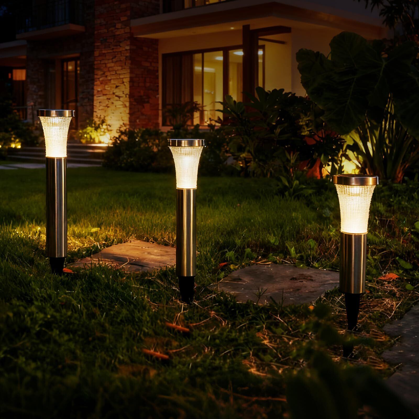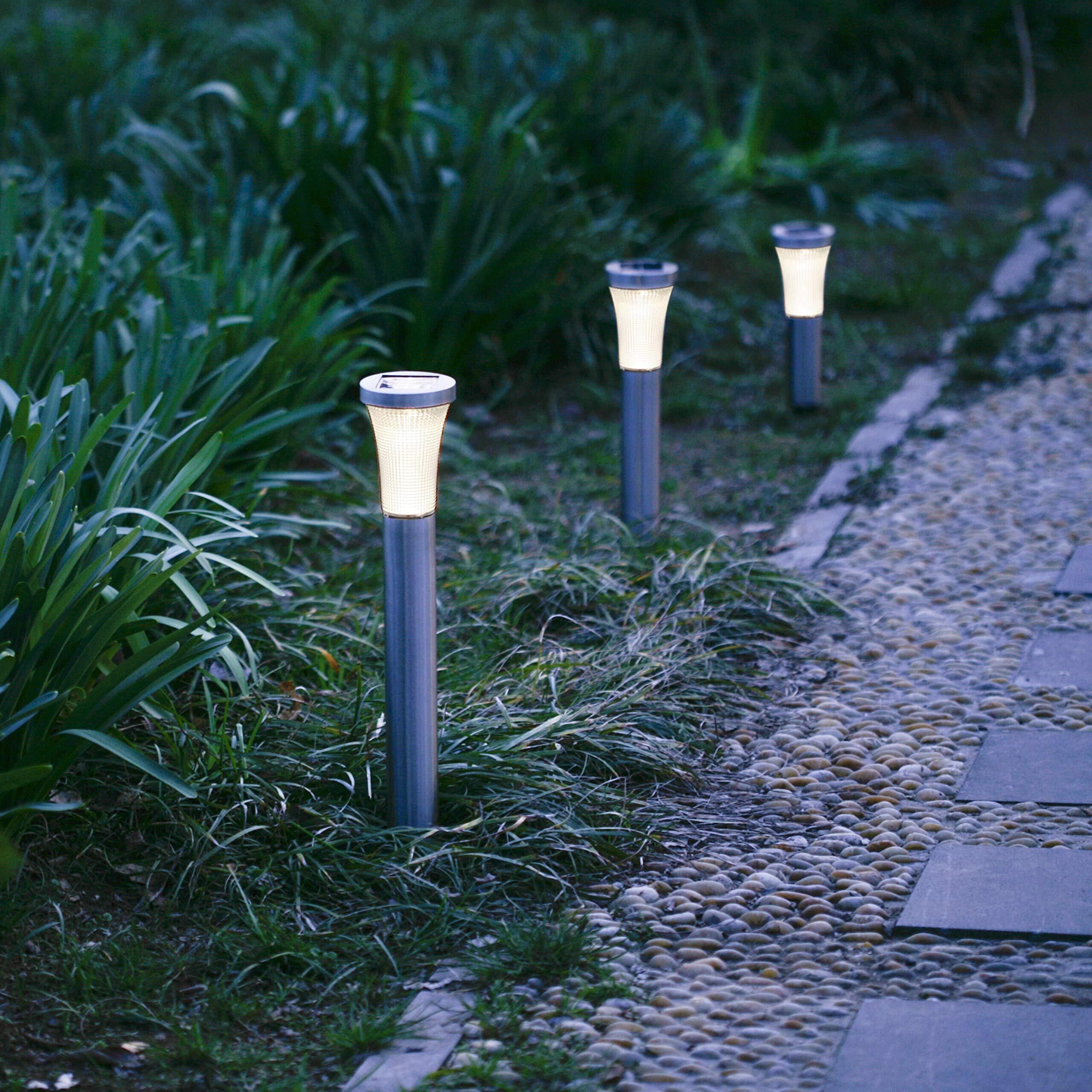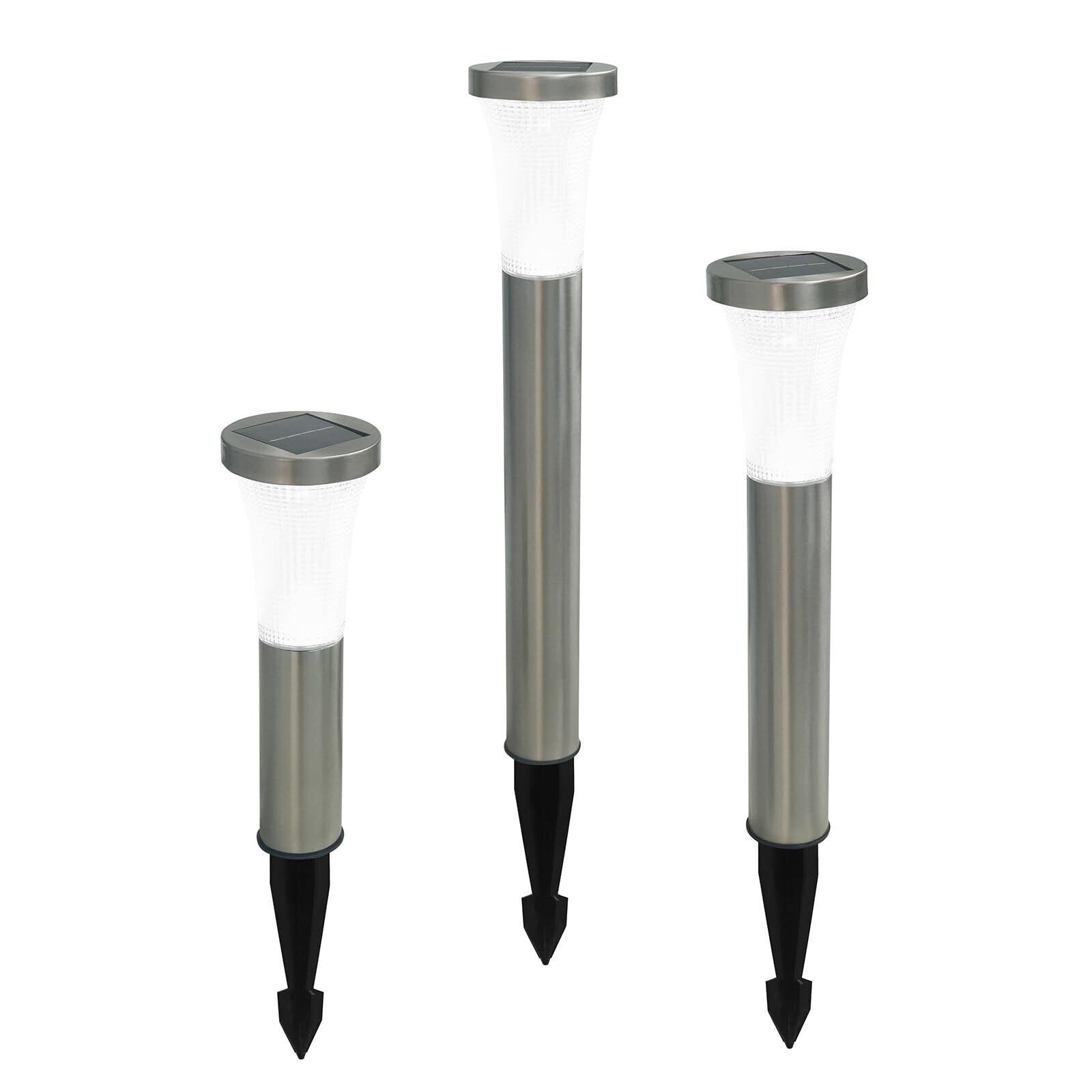 【特長】:ソーラーガーデンライト3個組、ホワイト&電球色LED、高さ3種類あり/ モダン的なステンレスポール・おしゃれな雰囲気を醸しだす ソーラーライト/ 差し込み式 / ホワイト&電球色LED、高品質ソーラーパネルで充電、自動点灯・消灯・付属アンカーで自由設置。・エコ+手間いらず、明るい庭園灯 ・お庭、パティ―会場、 ガーデンデ庭、ホテル中庭、おしゃれな雰囲気づくり/ ソーラーステンレスライト
