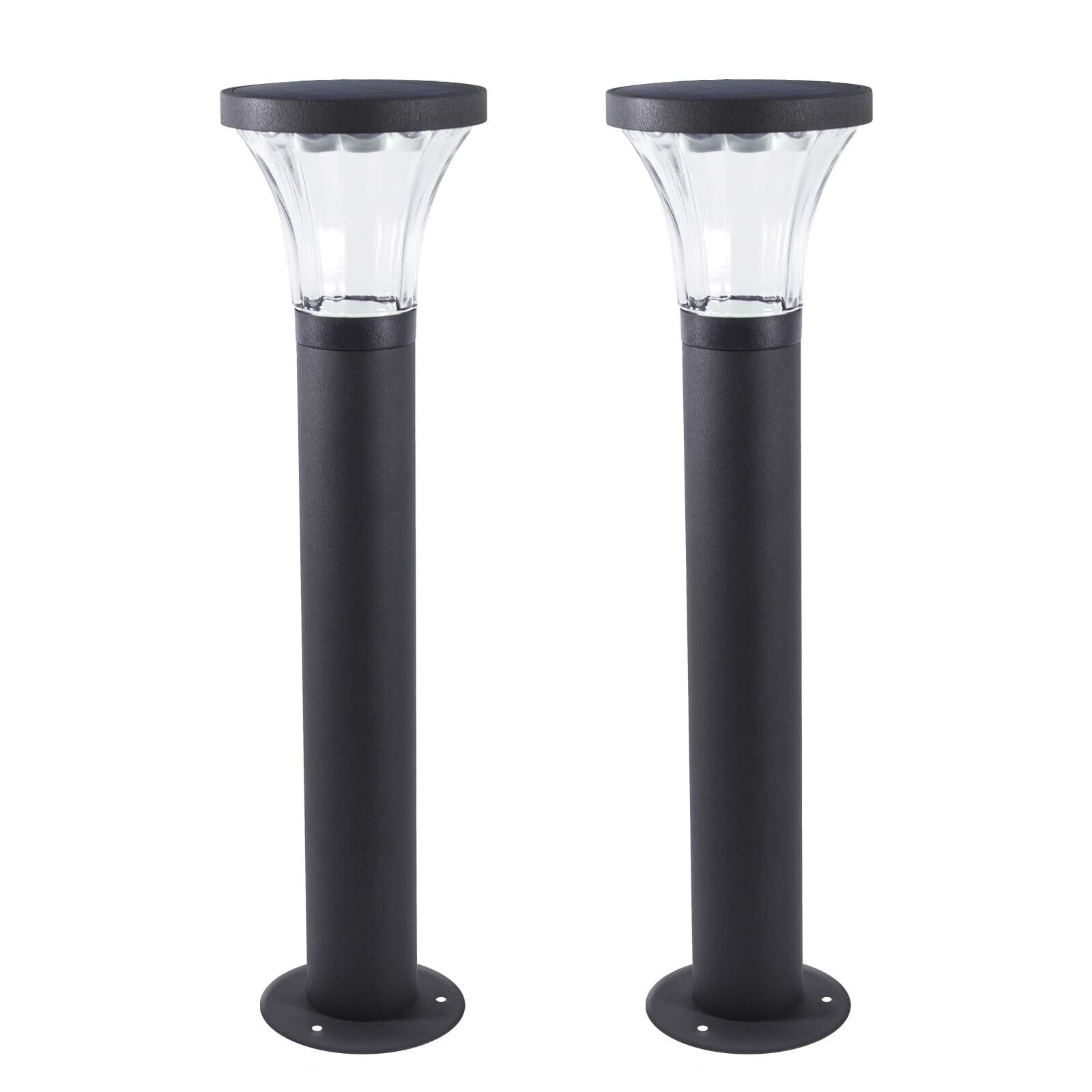 翌朝まで長持ち点灯する!! GWSOLAR 軽量アルミポール ソーラーライト2個組【明るさ 100lm / 透明ガラス / 高さ58cm】 ホワイト色・電球色スイッチ切替え、配線・電気工事不要、Smart Lighting 自動制御点灯、簡単設置、お庭/玄関先/階段/デッキ/ガーデンの灯 GWソーラー 型番:GW-AL104-58 2P