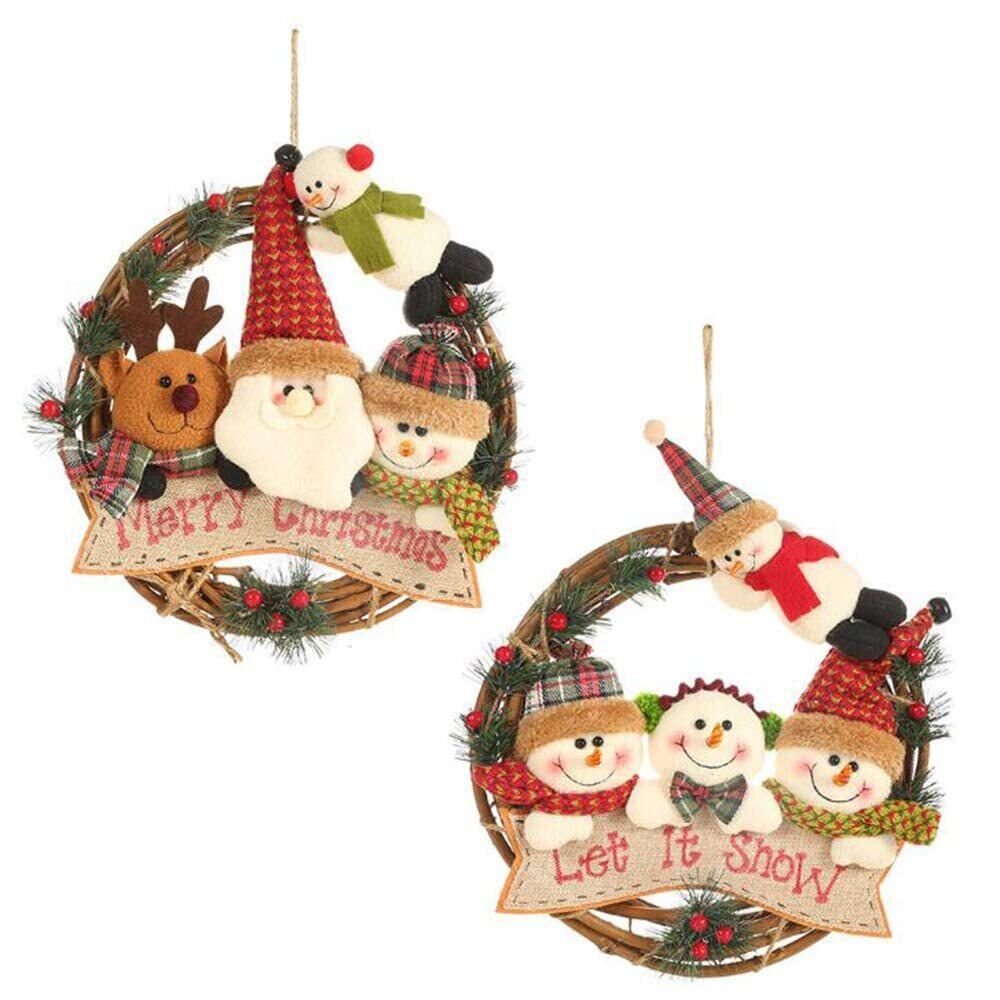 クリスマスリース クリスマス花輪 玄関 庭園 ドア ぶら下げ飾り Merry Christmas 雪だるま サンタクロース サンタクロース 立体感 玄関飾り かわいい ゴージャス 手作り ナチュラルリース 部屋 旅館 店舗飾り 装飾輪 お祝い 誕生日 贈り物 オーナメント 北欧風 30cm (B)