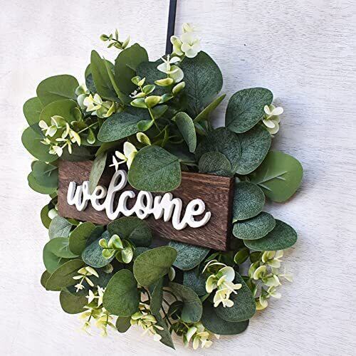 【2025最新】造花 ユーカリ リース ドライフラワー 【welcome】花輪 クリスマスリース ガーランド 玄関飾り 壁掛け 庭園飾り デコレーション クラフト クリスマス花輪 玄関 庭園 ドア ぶら下げ飾り (ウエルカム)