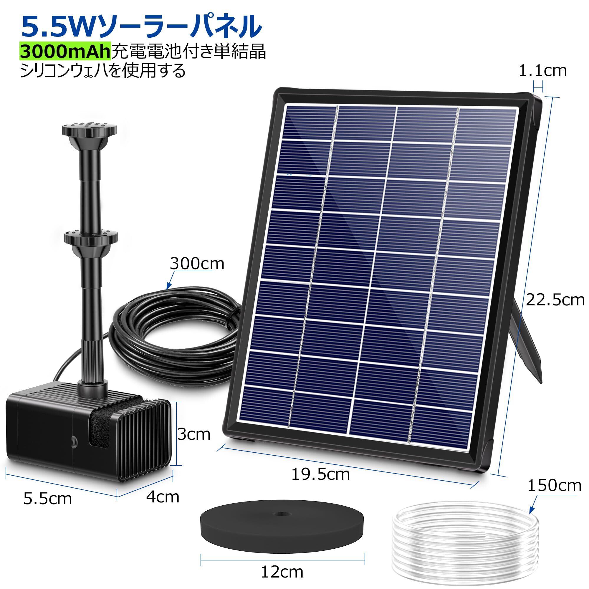 NFESOLAR ソーラーポンプ 屋外 ソーラー 噴水ポンプ ソーラー水中ポンプ 5.5W ソーラーパネル 浮きタイプ 太陽光充電 3000mAh内蔵バッテリー 水面に設置 酸素供給 水循環 ウォーターポンプ ノズル8個 チューブ1.5m付き 夜間使用不可 ビオトープ プール 池 バードバス 庭の装飾 ガーデン用 (蓄電式)