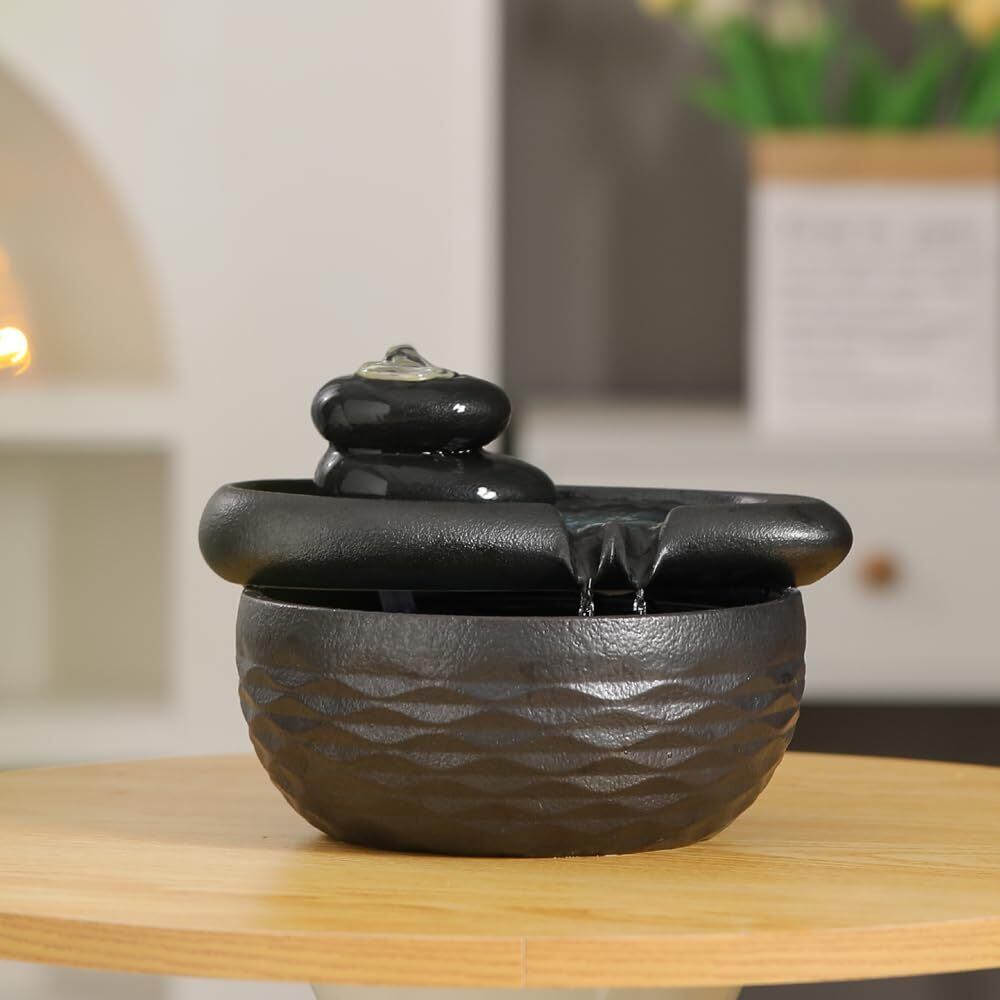 屋内卓上フォンテン 水の造形 ホームオフィスの机の装饰 ウォーターフォール セラミックミニ (ブラック)