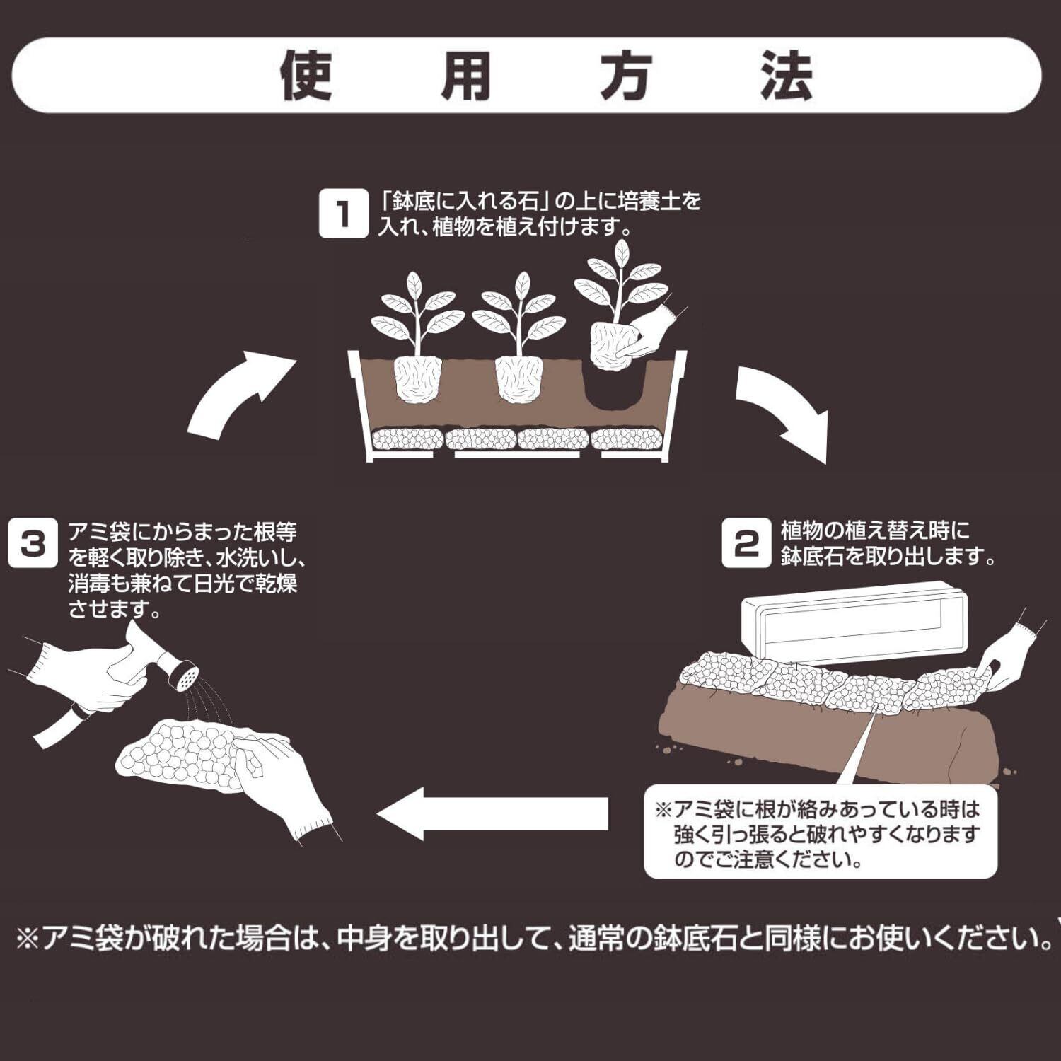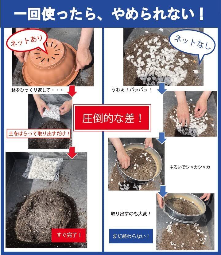 ネットに入っているため、植え替えの時に鉢底石と土などが簡単に分別できます。