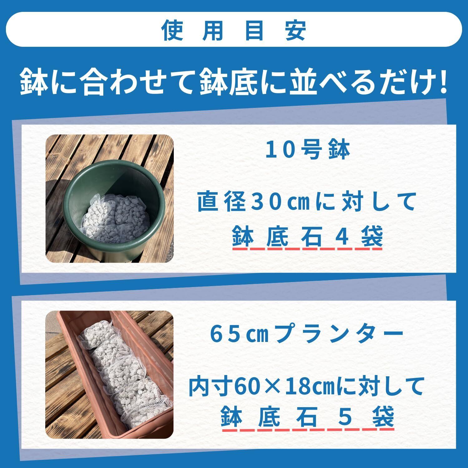 日本産の軽石を選別し、ネット(0.5L)に入れた「新発想の鉢底石」です。