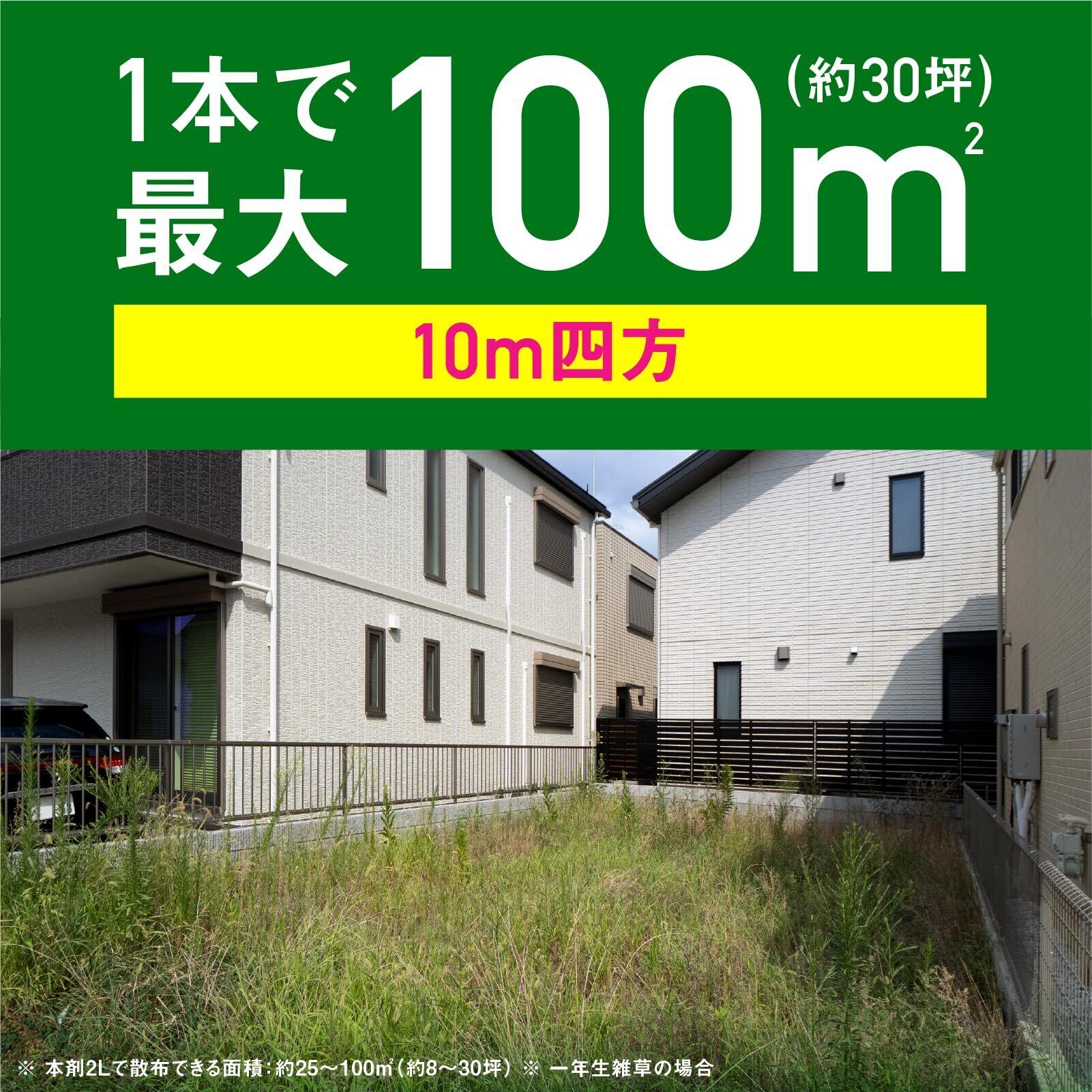 ●本剤2Lで散布できる面積:25から100平方メートル(約8から30坪)※一年生雑草の場合