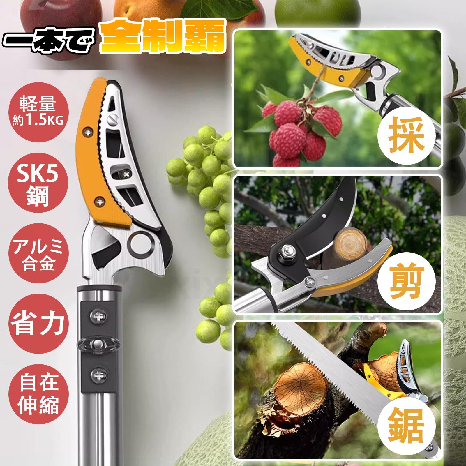 高枝切りバサミ 伸縮式 【庭師推奨】 sk5高級合金鋼 2段 3段 2m 3m 4m 5m 軽量 鋸付き ロック付き 果物取り 高枝切り鋏 高枝切りノコギリ 剪定 太枝 はさみ ガーデニング 採果 農場 庭園 園芸用具 業務用 家庭用