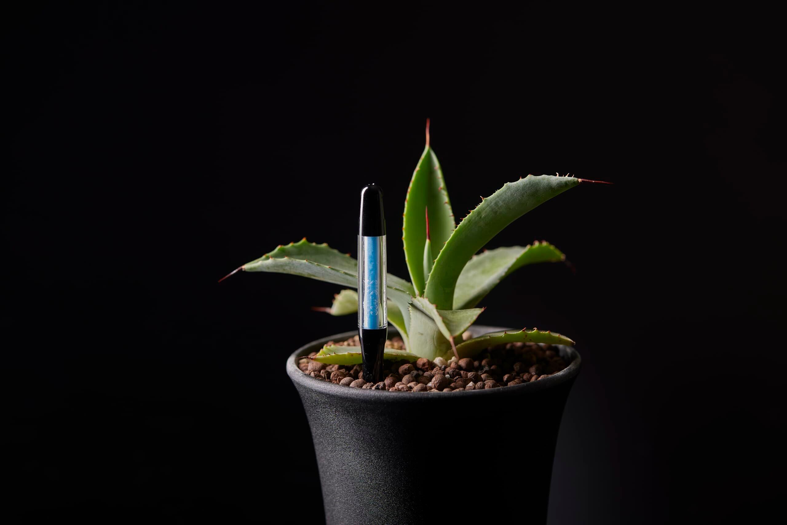 電池を使わず、鉢にさすだけで使える植物用水分計です。塊根植物、多肉植物、盆栽の専門店でもお取扱いいただいています。