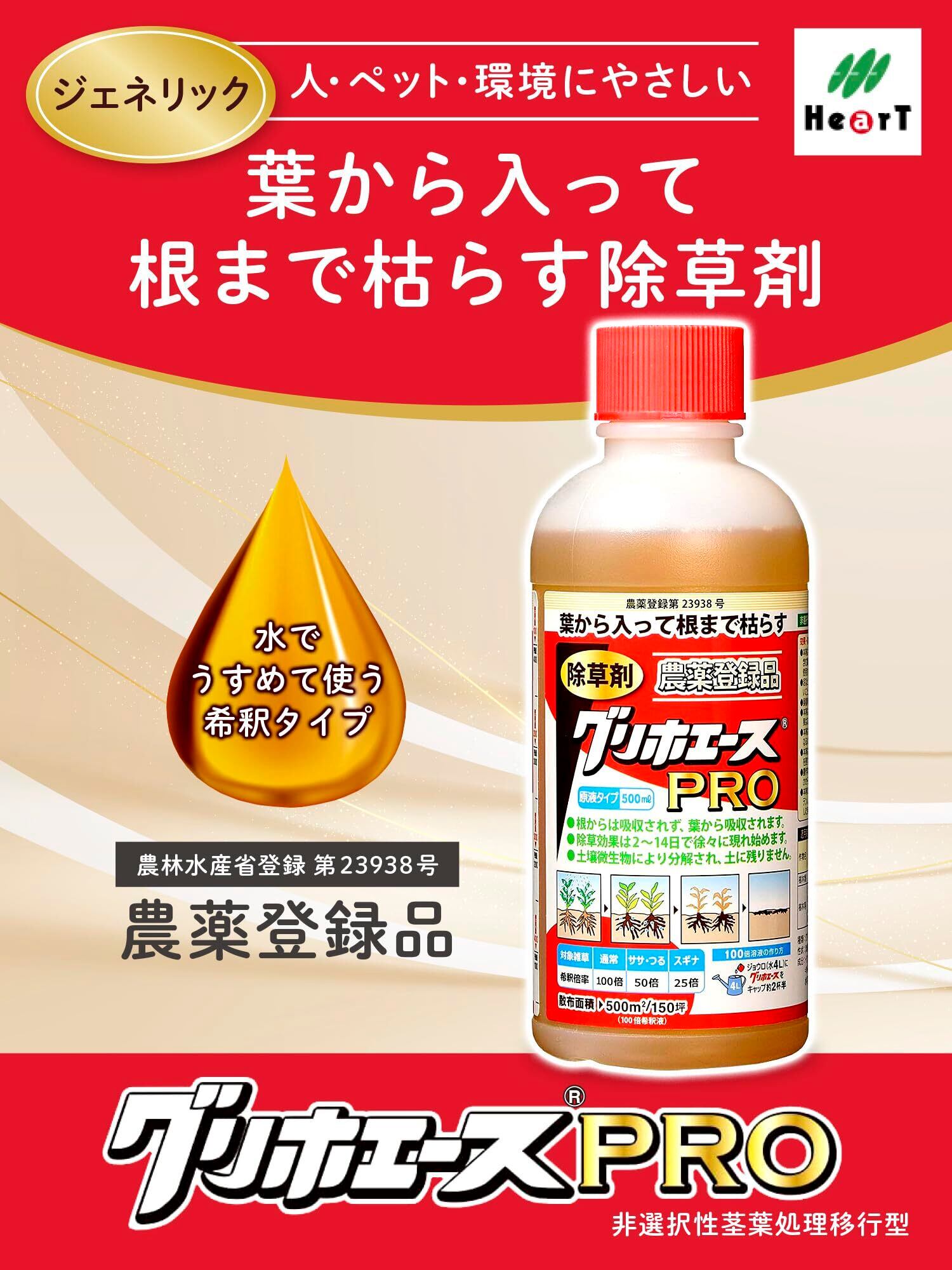 ハート(Heart) グリホエースPRO 500ml 除草剤 液剤 原液 ジェネリック 頑固な雑草 根まで枯らす 笹 つる スギナ 宅地 駐車場