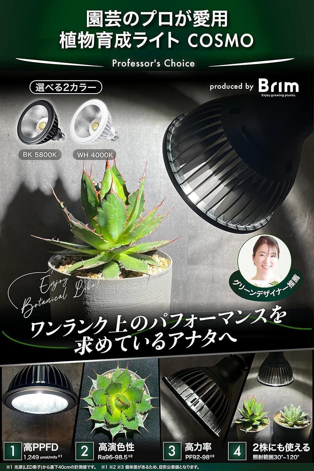 【特別価格】【グリーンアドバイザー推薦】BRIM(ブリム) COSMO 22W 植物育成ライト LED フルスペクトル 高PPFD 高力率 高演色性 植物用LEDライト 省エネ設計 長寿命 E26口金 反射板&集光レンズ付き (BK (22W)白色系 (5800K))