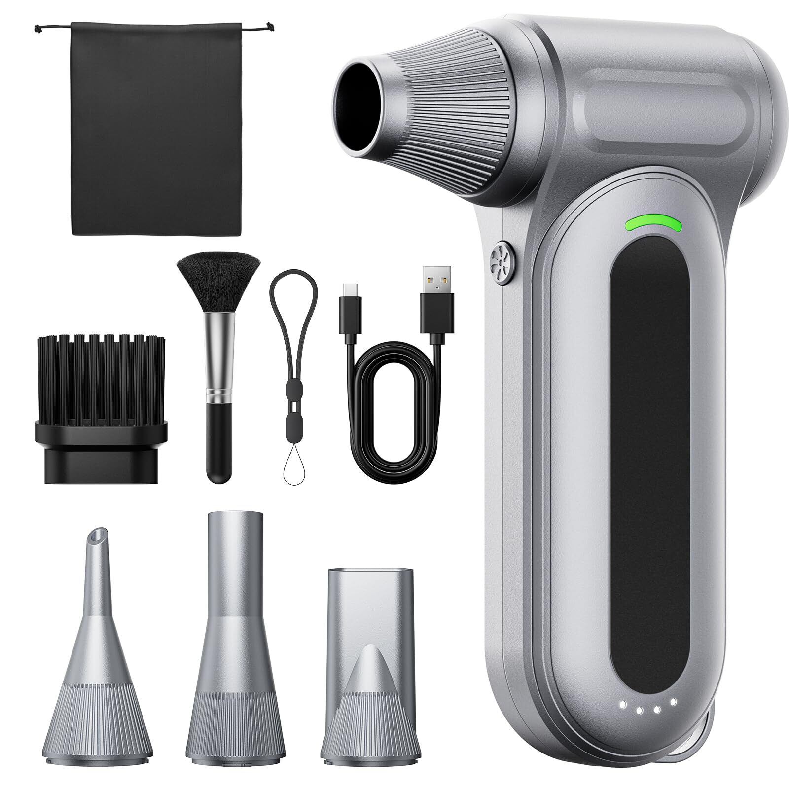 【限定セール】【家電批評ベストバイ受賞】エアダスター 無段階&4段階風量調整 電動ブロワー 小型 ブロアー 7500mAh 300000RPM高速回転 強力 150m/sな風速 4種類ノズル LEDライト 収納袋付き USB-C充電式 PC掃除/エアコン/キーボード/洗車用 日本語取扱説明書