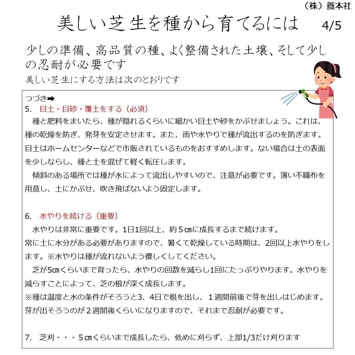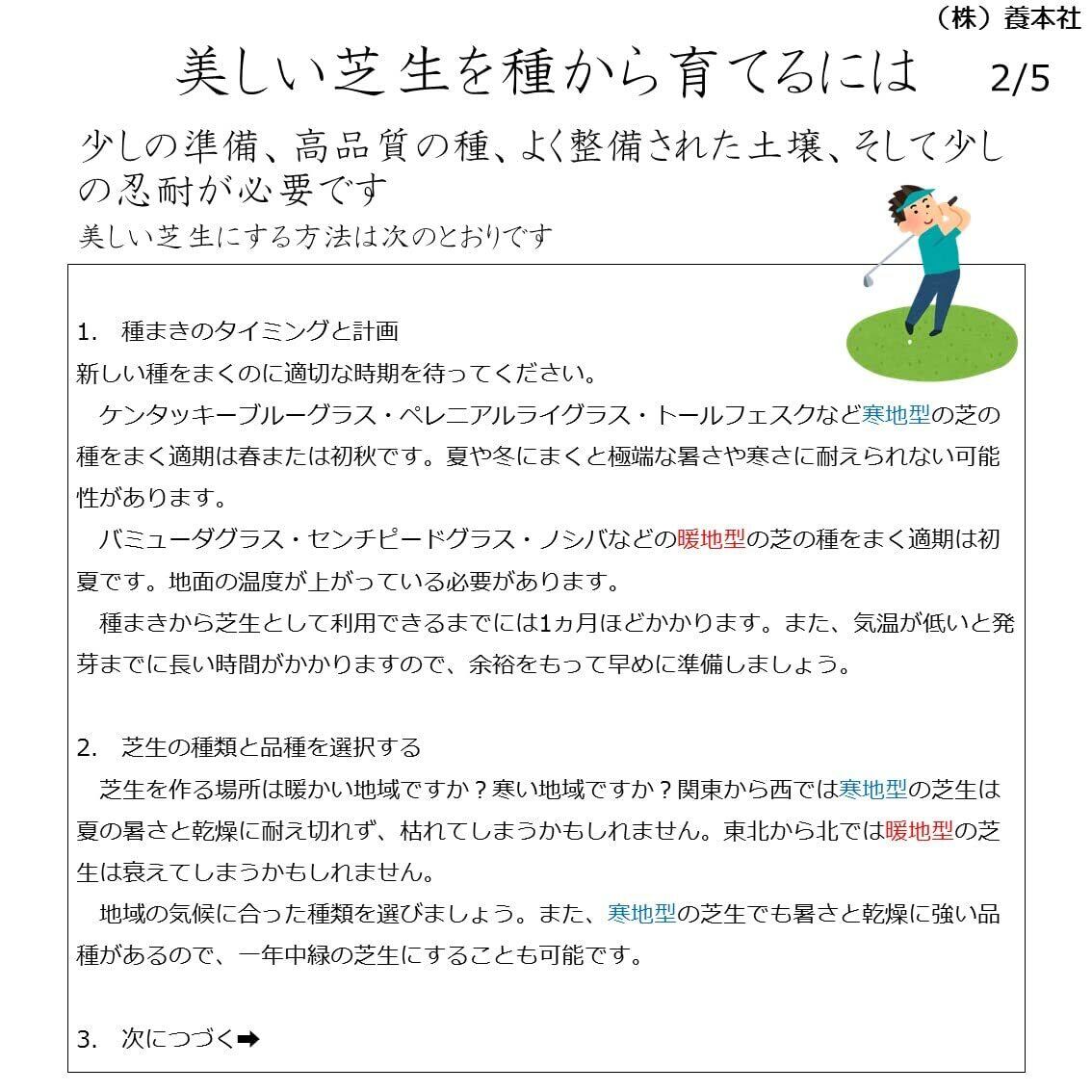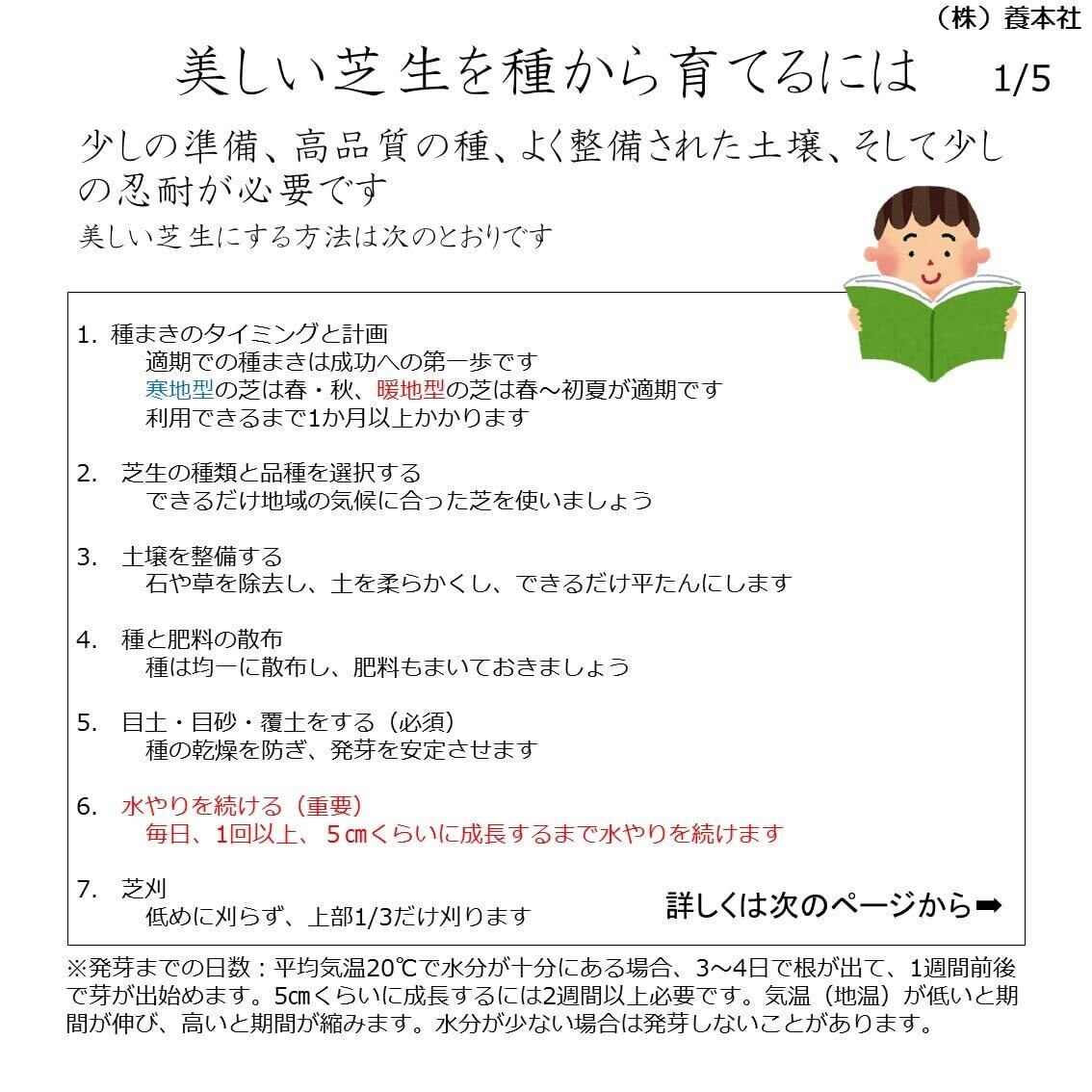内容量:400g(約10㎡~20㎡分)まきどき:春3月下旬~6月・秋8月下旬~10月 発芽率:75%以上