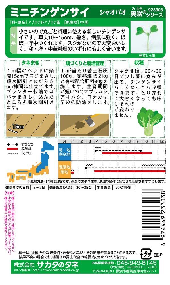 サカタのタネ 実咲野菜3303 ミニチンゲンサイ シャオパオ 00923303
