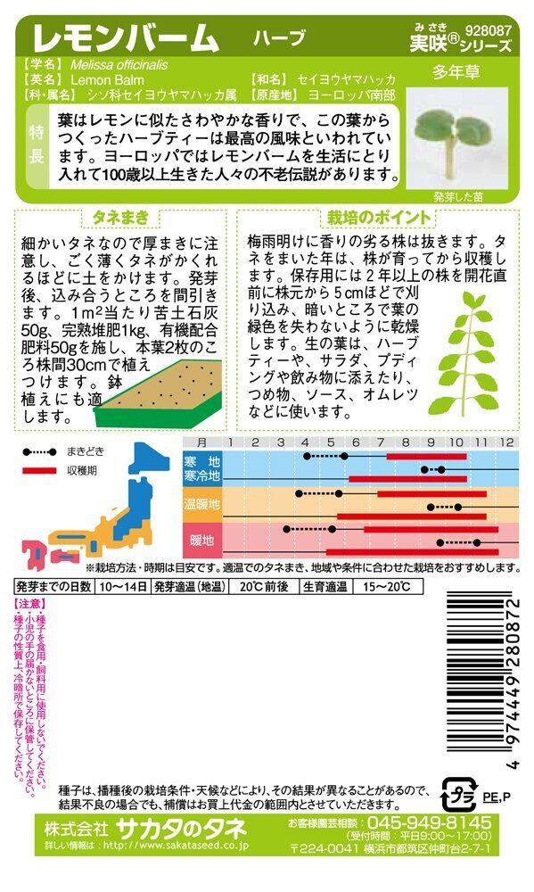 サカタのタネ 実咲ハーブ8087 レモンバーム ハーブ 00928087