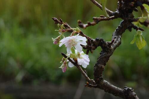 十月桜は耐寒性、耐暑性も強い品種です。11月頃からと春の年2回咲いてくれるのか特徴です。 淡いピンクの八重咲の桜が楽しめ桜は春に咲くのが普通の桜ですが、 十月桜は春の桜に比べると花の数も少し めの感じですが秋と春の年2回咲かせる桜です 秋は10月頃から落葉が始まり、その後に冬の12月頃までお花が咲きます 少し変わった桜の贈り物としても楽しめる盆栽です。