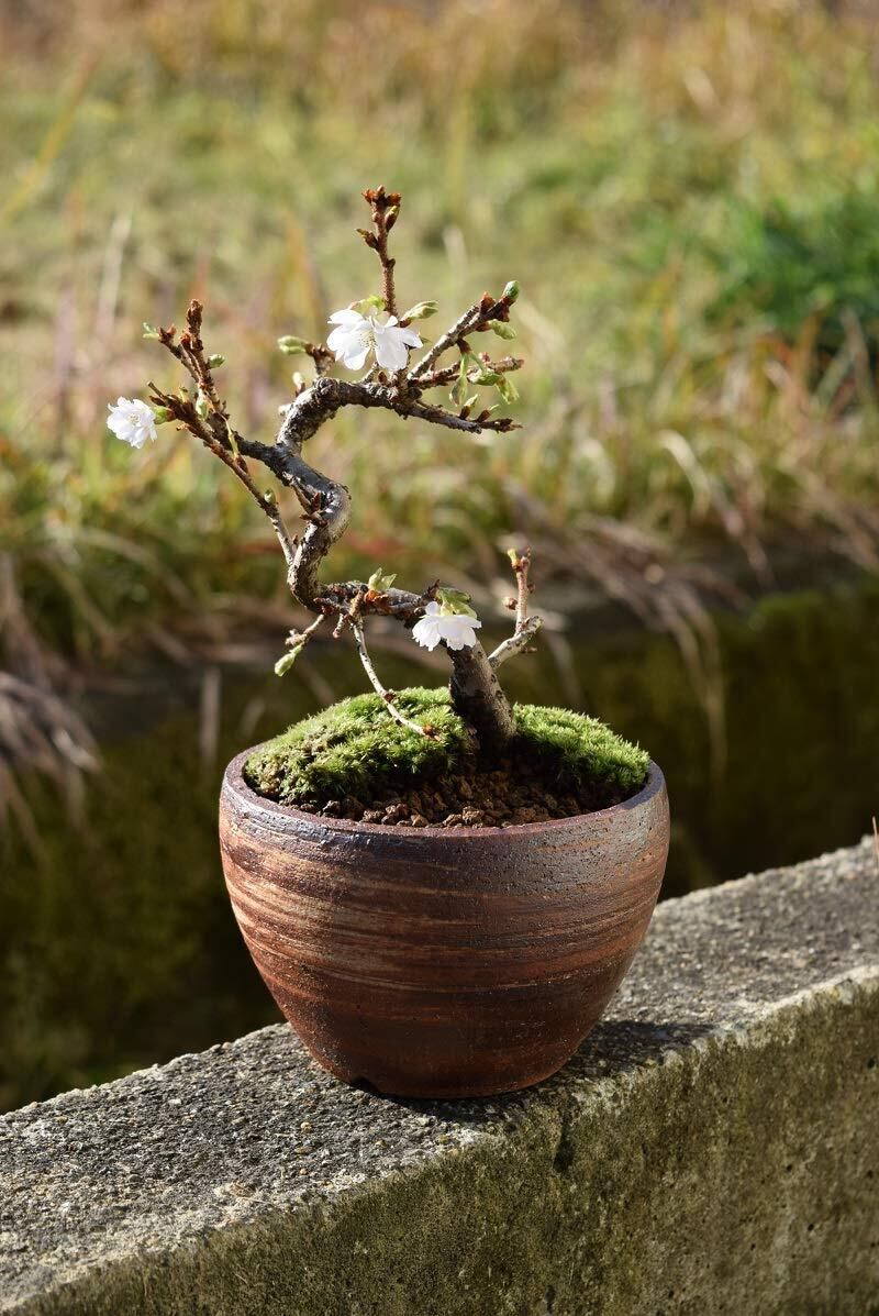 十月桜盆栽 さくらぼんさい花鉢植え 1鉢 信楽焼入り鉢植えボンサイ 二期咲サクラ