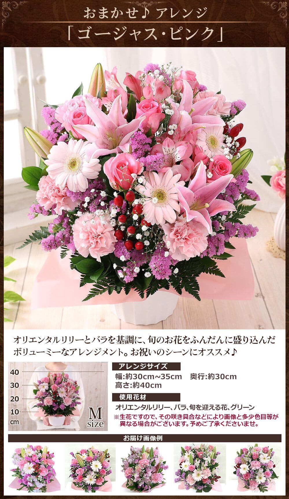 花 誕生日 プレゼント おまかせアレンジ ゴージャス・ピンク ギフト 記念日 お祝い 生花 女性 BunBunBee