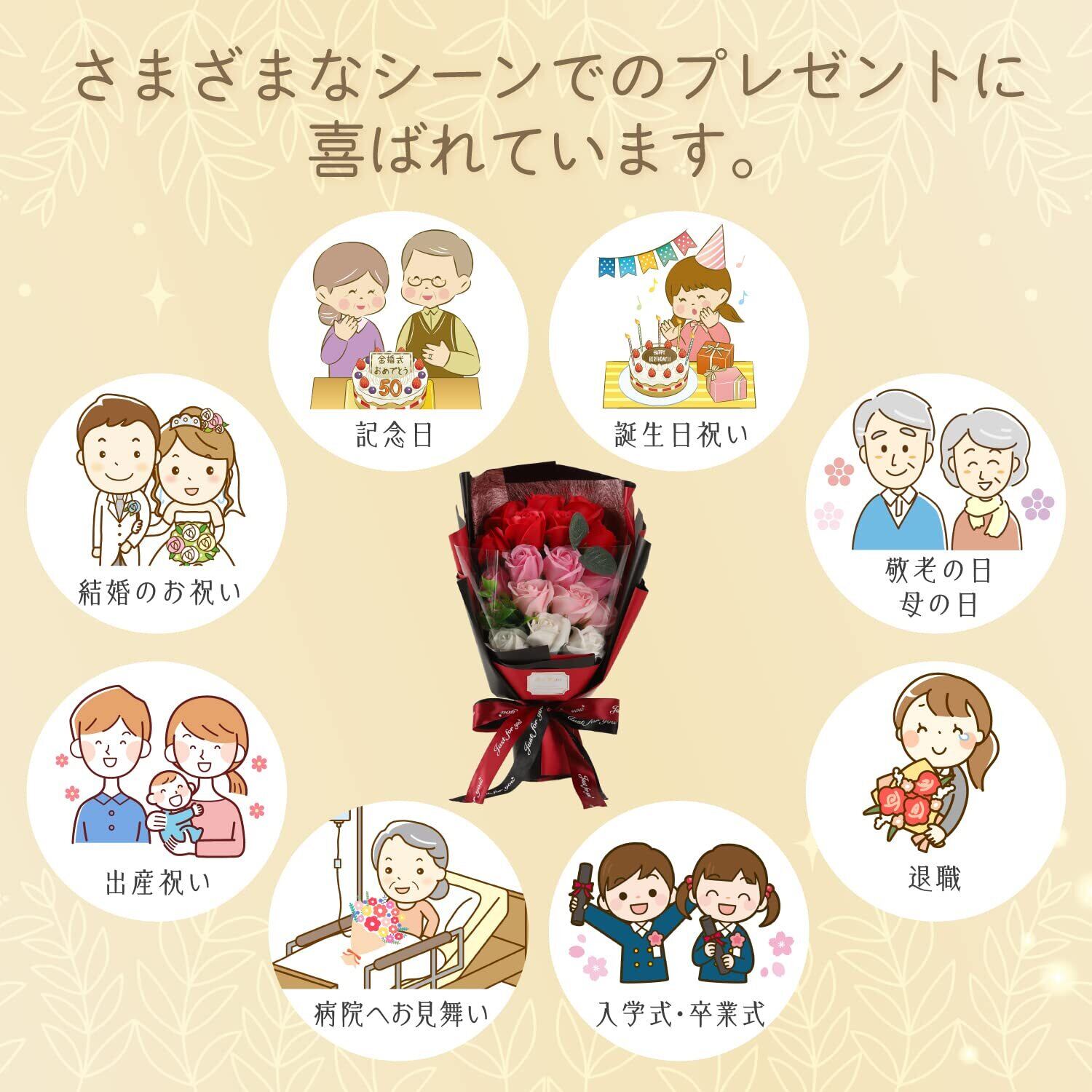 Moluppy ソープフラワー 花束 持ち運びに便利な 紙袋付き ボックス付き バラ 18本 グラデーション レッド 赤 薔薇造花 誕生日 記念日 お祝い 送別会 ギフト プレゼント