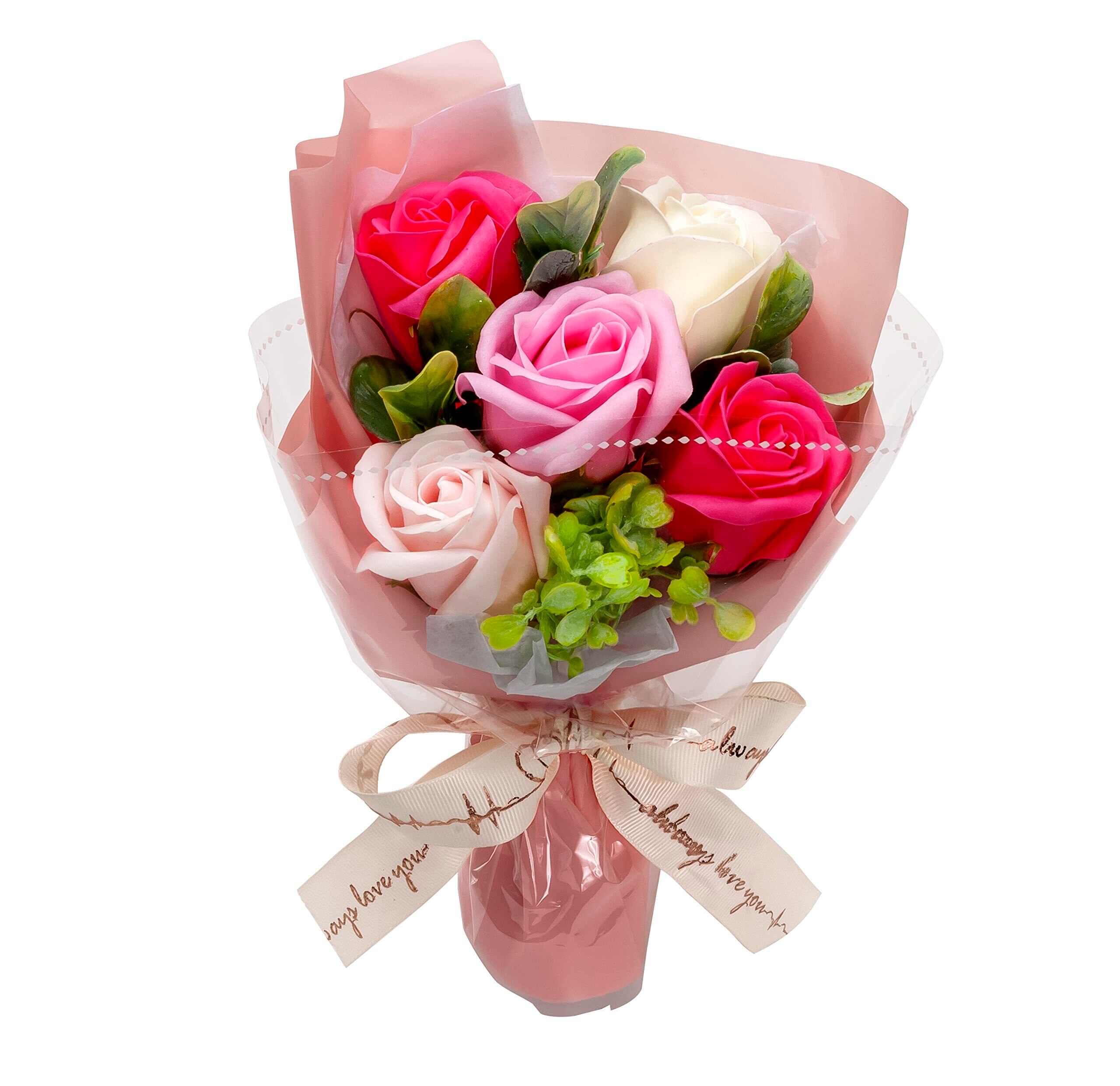 BIO フレグランスソープフラワー モナブーケ 紙袋入 お祝い 記念日 誕生日 発表会 ブライダル パーティー 送別会 プレゼント お歳暮 クリスマス 成人の日 成人式 (ピンク)