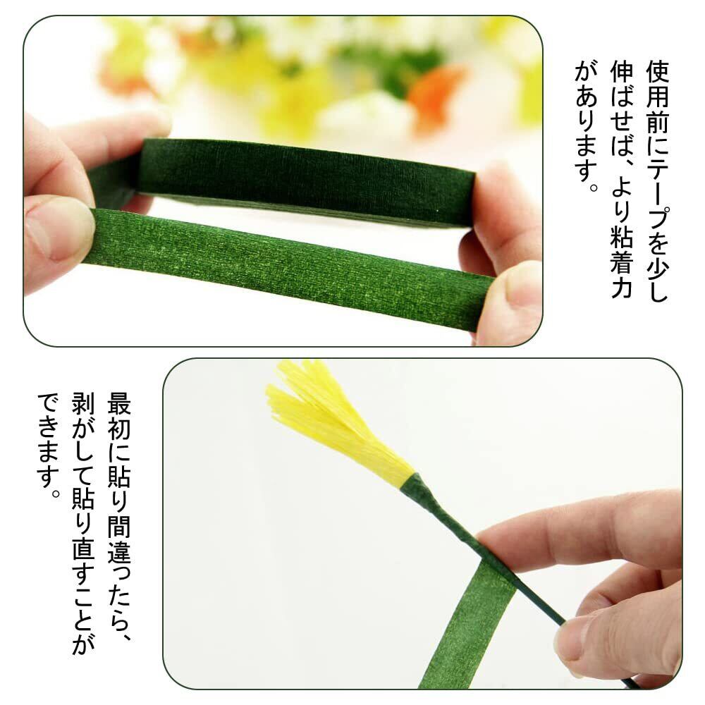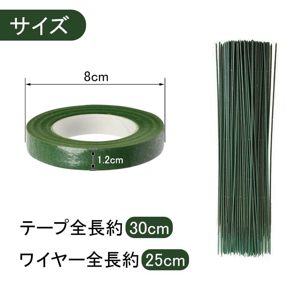 造花セット フローラテープ 1巻 地巻ワイヤー 50本 ダークグリーン 造花テープ フラワーアレンジメントキット 手芸 DIY