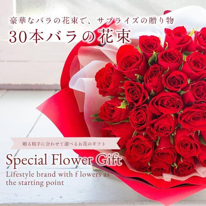 【特別価格】フラワーキッチン バラ30本の花束 【バイカラーラッピング】 赤 バラ 誕生日 結婚記念日 ギフト プレゼント 生花