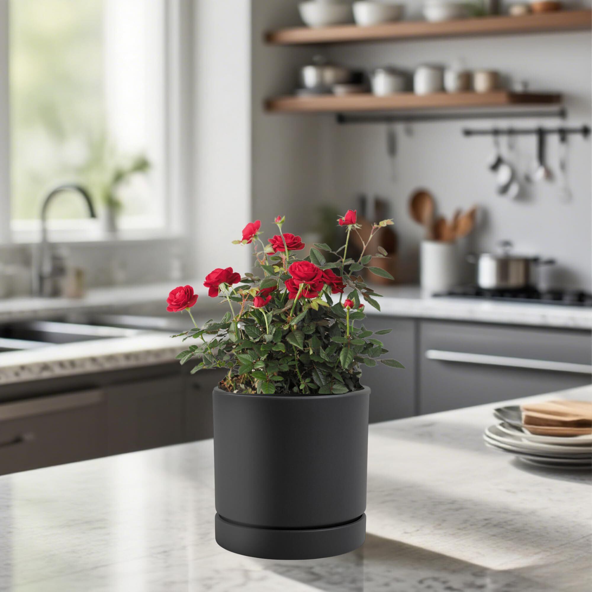 Greenship 植木鉢 受け皿付き 5号(15.8CM) マット質感なオシャレ鉢 エコ素材 白灰色 (ブラック, 5号)