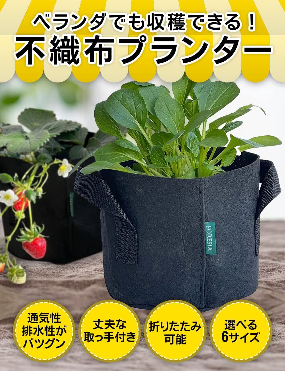不織布プランター 5ガロン 2個入り ベランダ栽培 不織布ポット 植木鉢 幅29cm×高さ25cm 16リットル 10号 軽い 割れない 家庭菜園 栽培袋 布袋 布鉢 FORESIA ブラック