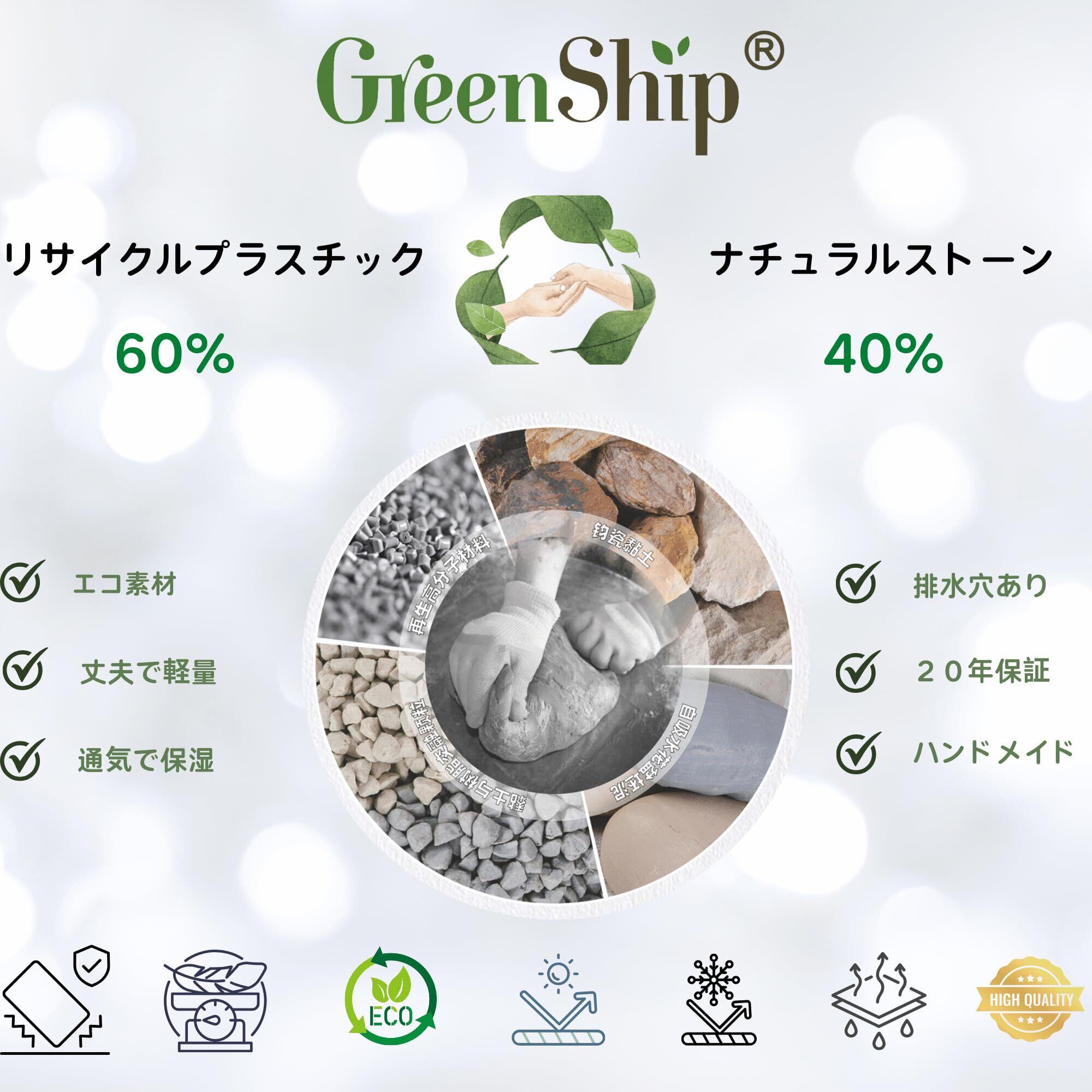 ブランドの信頼性:GreenShipは創業以来25年の歴史を持ち、世界中の76か国で販売されているハンドメイド植木鉢のブランドです;2つの工場と自社開発の高分子融合技術により、美しさと機能性を兼ね備えた製品を提供しています