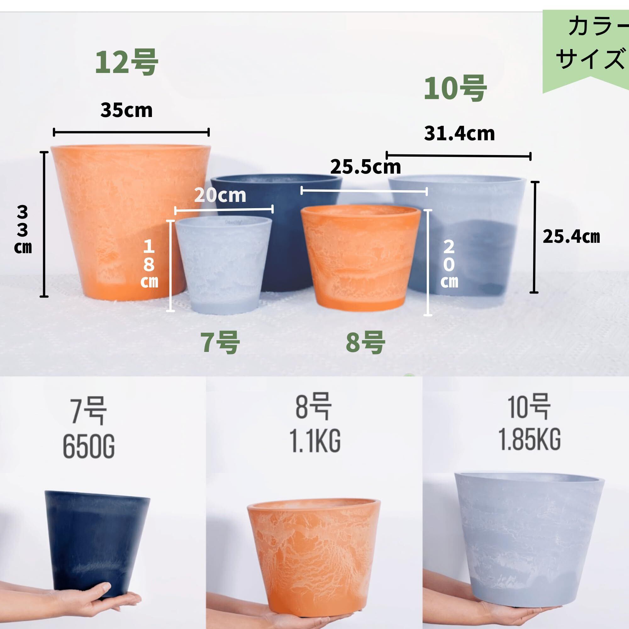 サイズと色:この商品は7号、8号、10号、12号4サイズとブラック、ライトグレー、テラコッター3色があります