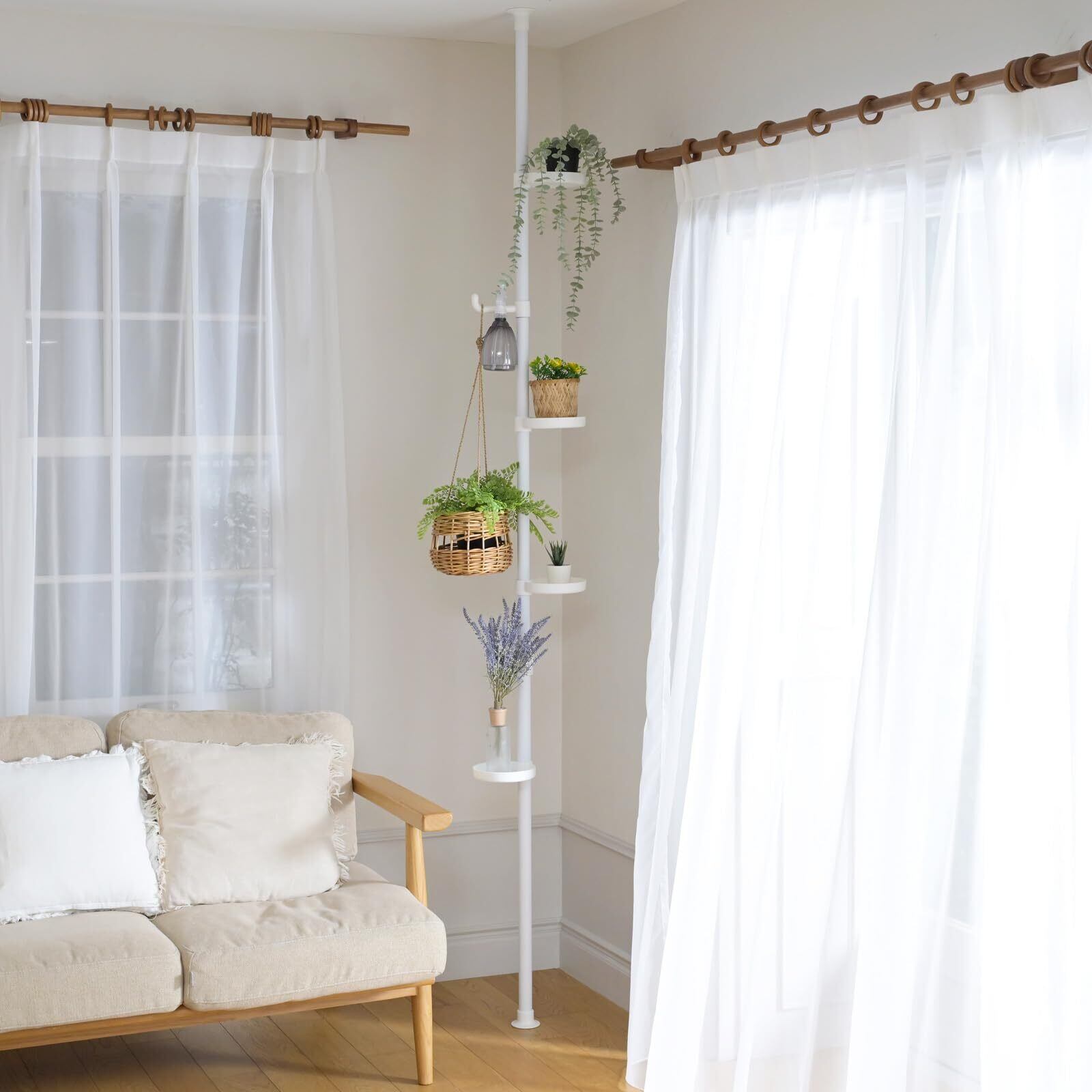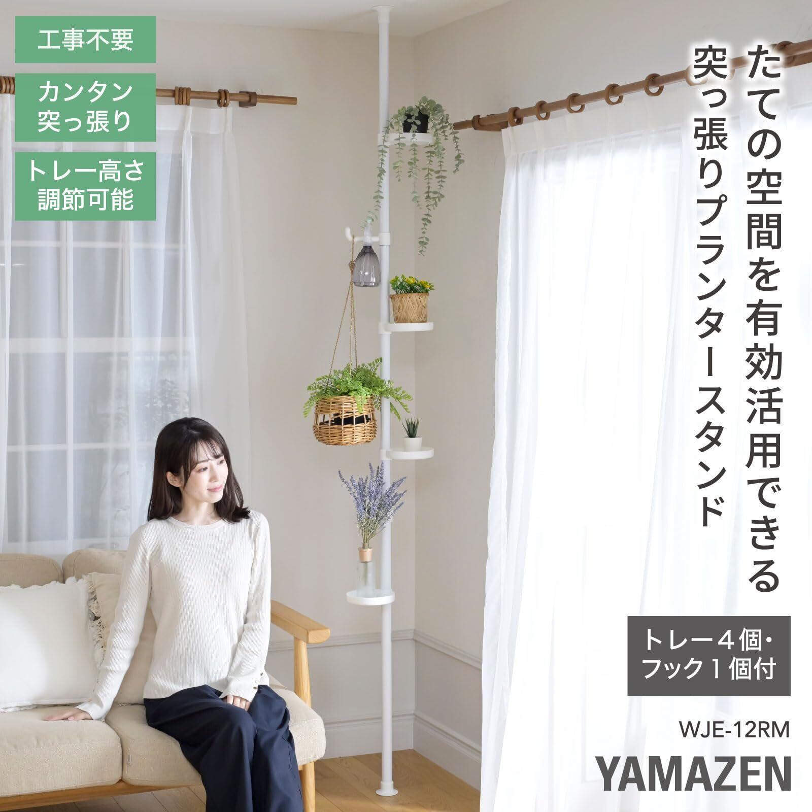 山善(YAMAZEN) 突っ張り ラック ポールハンガー プランタースタンド 設置簡単 (トレー4個・フック1個付き) ワンタッチ突っ張り (実用新案取得済) 幅30×奥行30×高さ190-260cm フラワースタンド ボタニカル 室内 組立品 マットホワイト WJE-12RM(MWH)