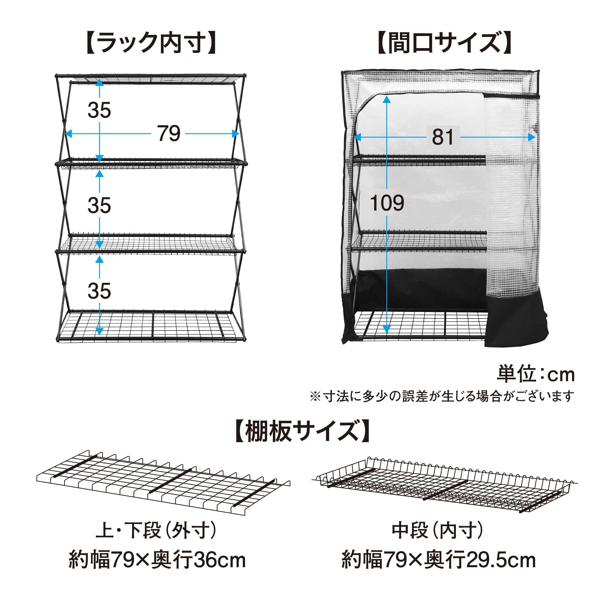 本製品は、ワイドでハイタイプ(高さ121cm)のラックとカバーがセットになったパンタグラフ構造の折りたたみラックです。