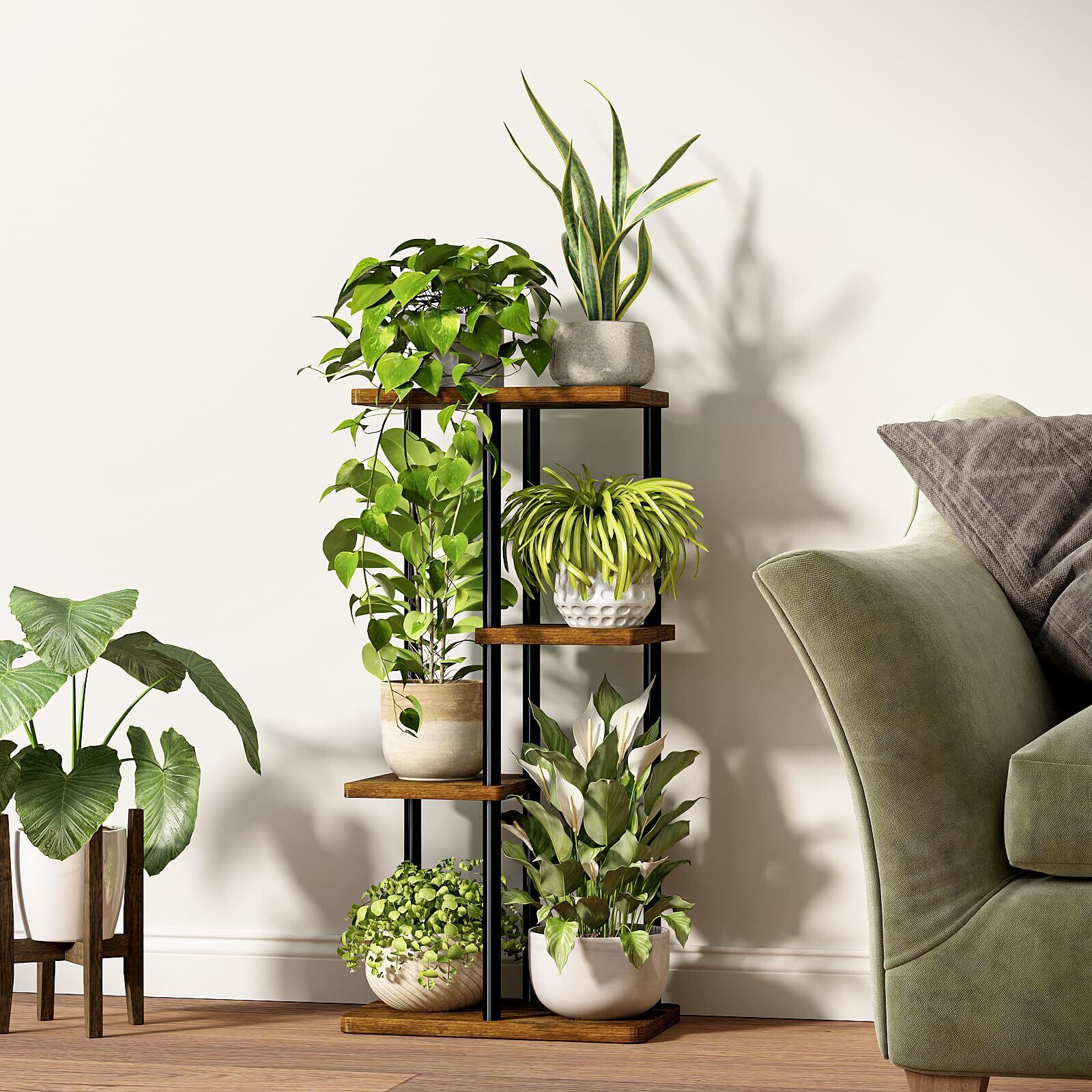 Bamworld フラワースタンド 室内 プランタースタンド 4段花台 観葉植物台 おしゃれ 植物 棚 植木鉢台 植木鉢スタンド リビング 寝室 ベランダ