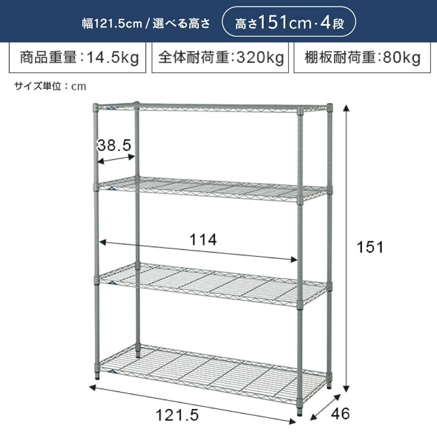 耐荷重:全体:320kg/棚板1枚あたり:80kg