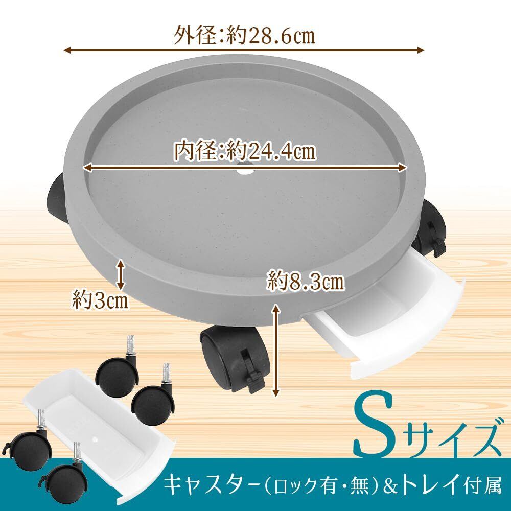 キャスター付き 植木鉢台 鉢受台 フラワースタンド 鉢 (S, ホワイト)