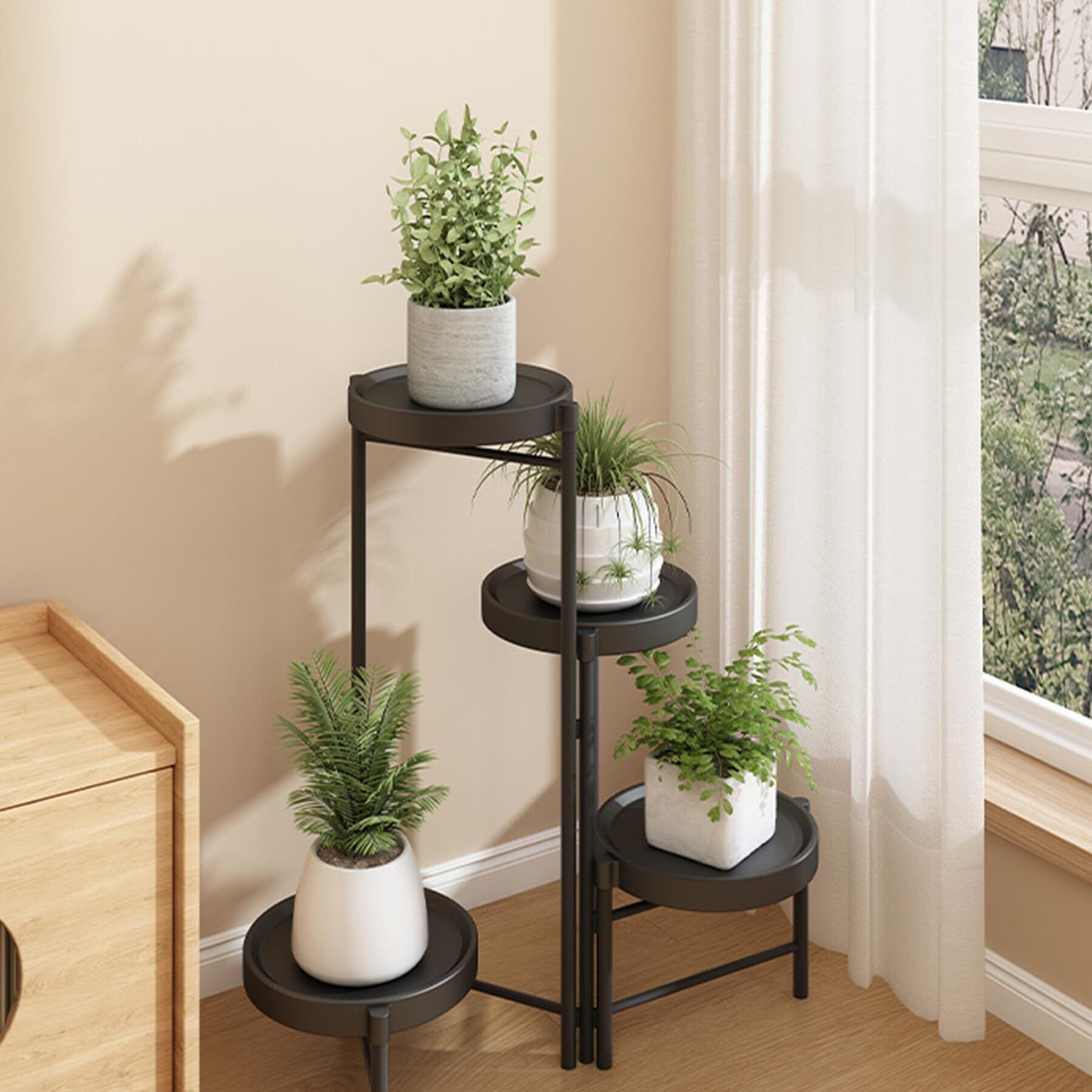 フラワースタンド ガーデンラック 室内/屋外 玄関 花台 観葉植物 園芸ラック 植木鉢台 花棚 盆栽 組み立て簡単 調節可能 植木鉢台 おしゃれ (ブラック, 4段)