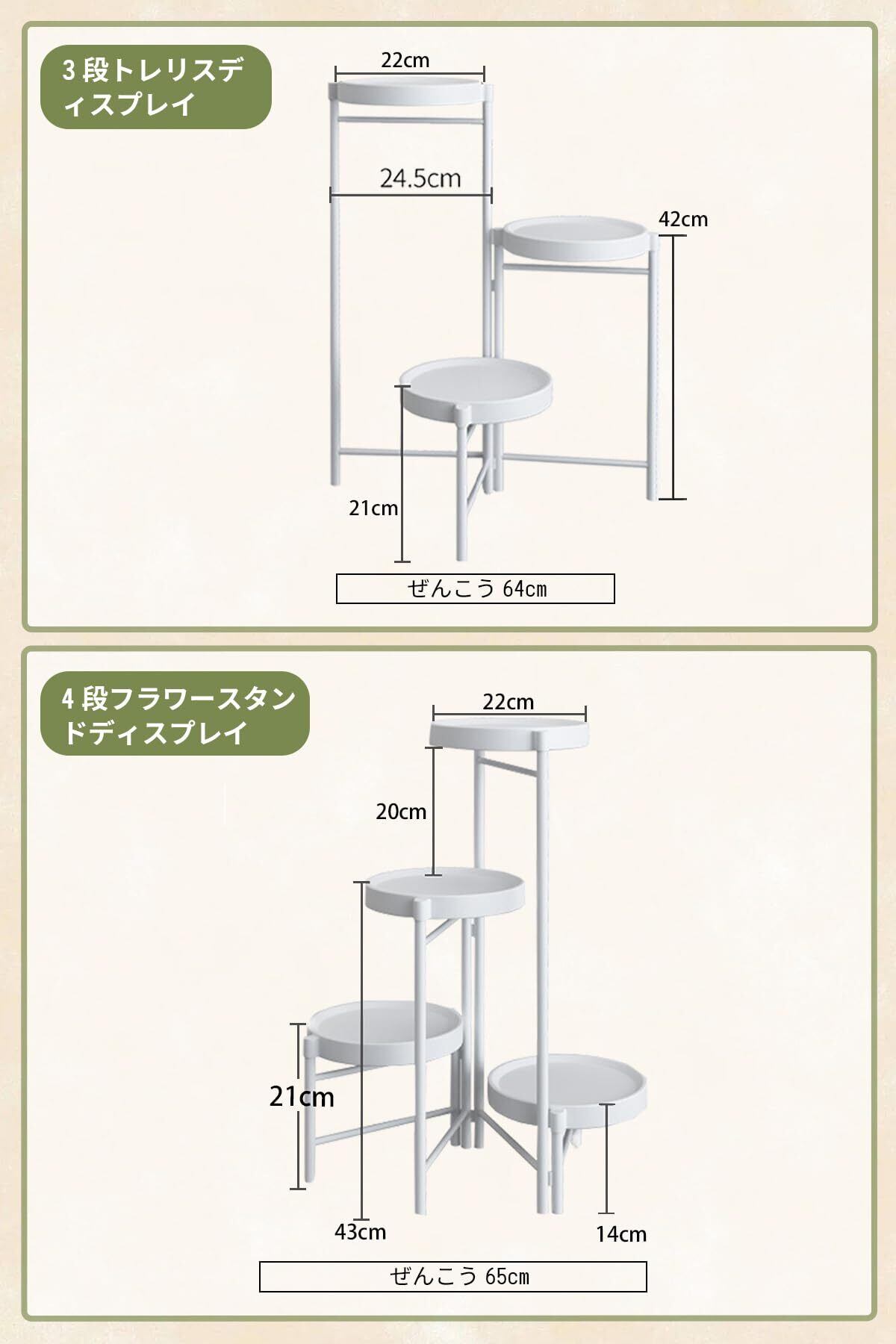 【高さのバランスが整っている】フラワースタンドの高さを組み合わせて調整し、バランスのとれた差別化したレベルで、さまざまなサイズの植木鉢を配置するのに使用できるため、植物を簡単に配置できます。