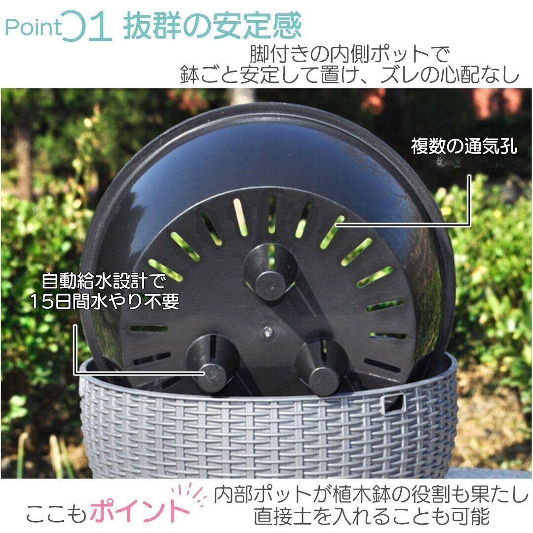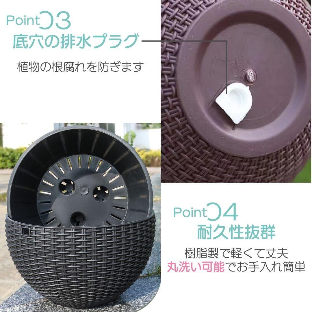【簡単お手入れ】底穴の排水プラグにより、屋内外どちらでも使用可能なプランター。樹脂製で軽くて丈夫、丸洗いも可能で、お手入れが簡単です。シンプルなデザインはどの空間にもマッチし、多種多様なサイズとカラーで、あなたの好みに合わせて選択できます。