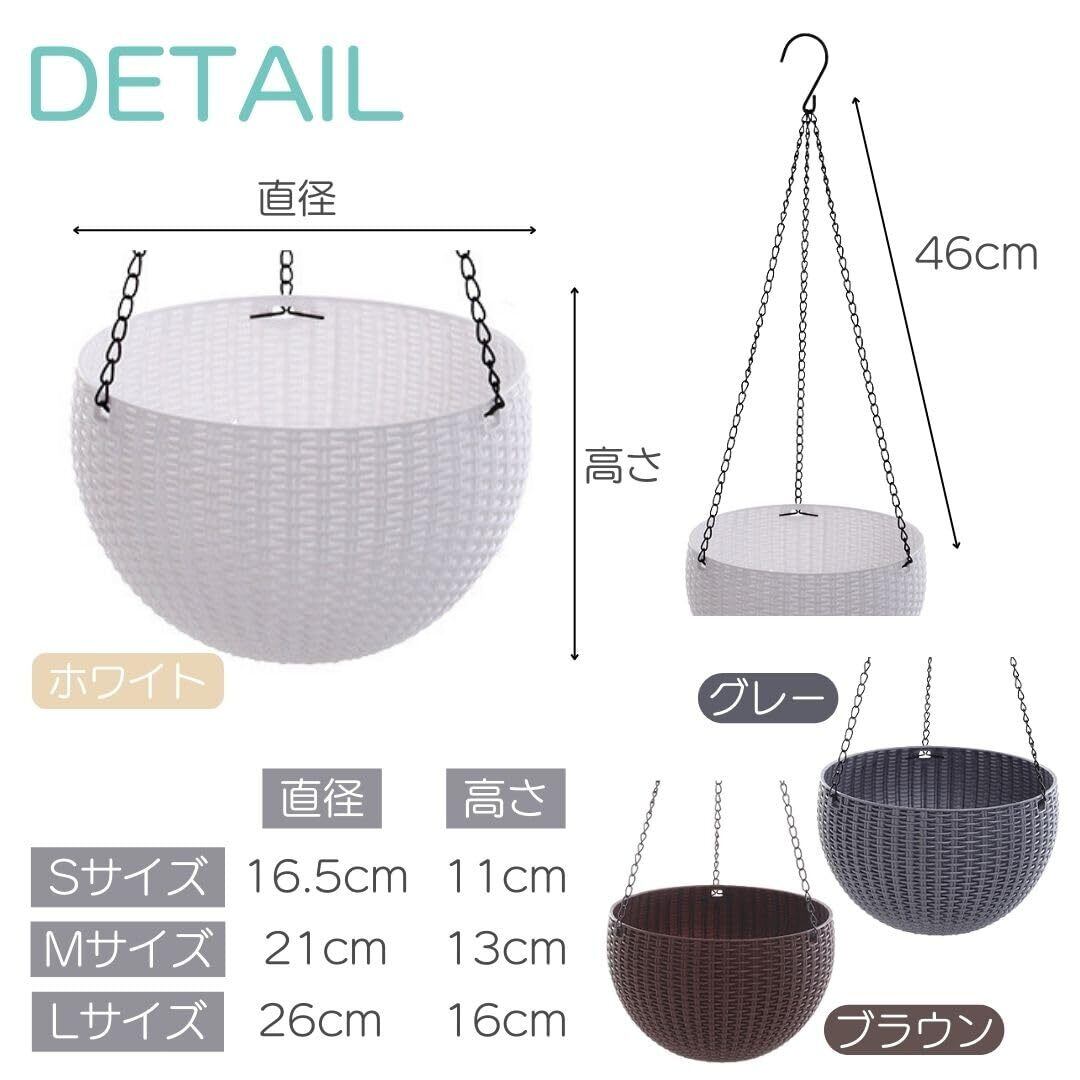 【緑のある生活をもっと手軽に】シンプルながらも洗練されたエレガントな籐編み風デザインのハンギングプランター。吊り下げ用のチェーンは取り外し可能で、場所を選ばずに使用できます。植物だけでなく、小物やフルーツを入れてもおしゃれ。内側の二層式ポットは取り外して丸洗い可能で、清潔さを保ちやすいです。また、通気性と水はけの良さで、植物も長持ち。インテリアに調和する複数の色とサイズをご用意しています。