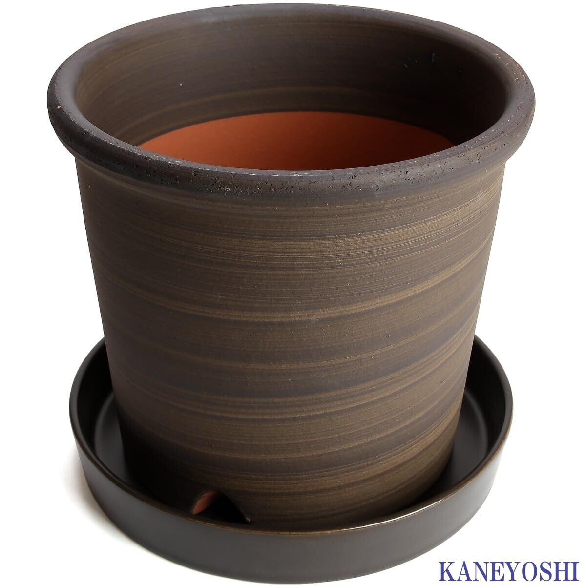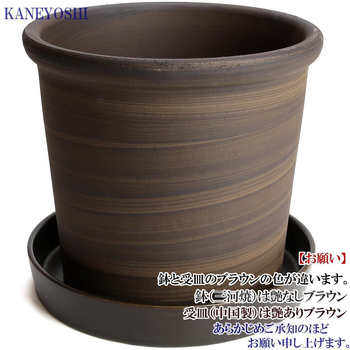 鉢 三河焼 KANEYOSHI 【日本製/安心国産品質】 陶器 植木鉢 三河焼 Sポット ブラウン 7号 皿付き