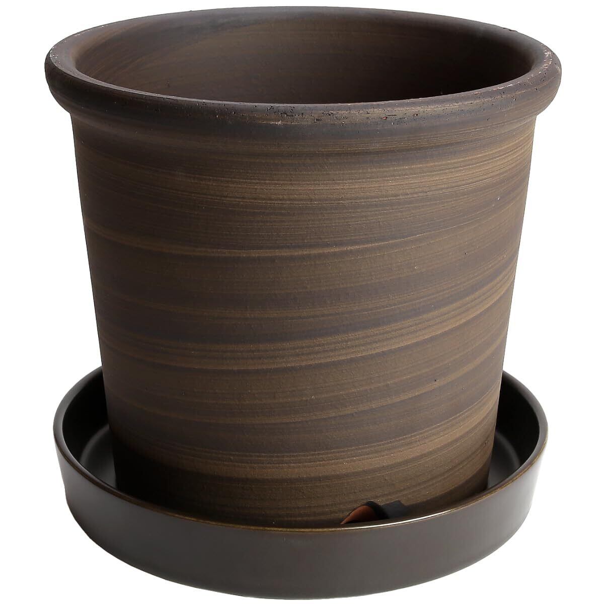 【新着商品】鉢 三河焼 KANEYOSHI 【日本製/安心国産品質】 陶器 植木鉢 三河焼 Sポット ブラウン 7号 皿付き