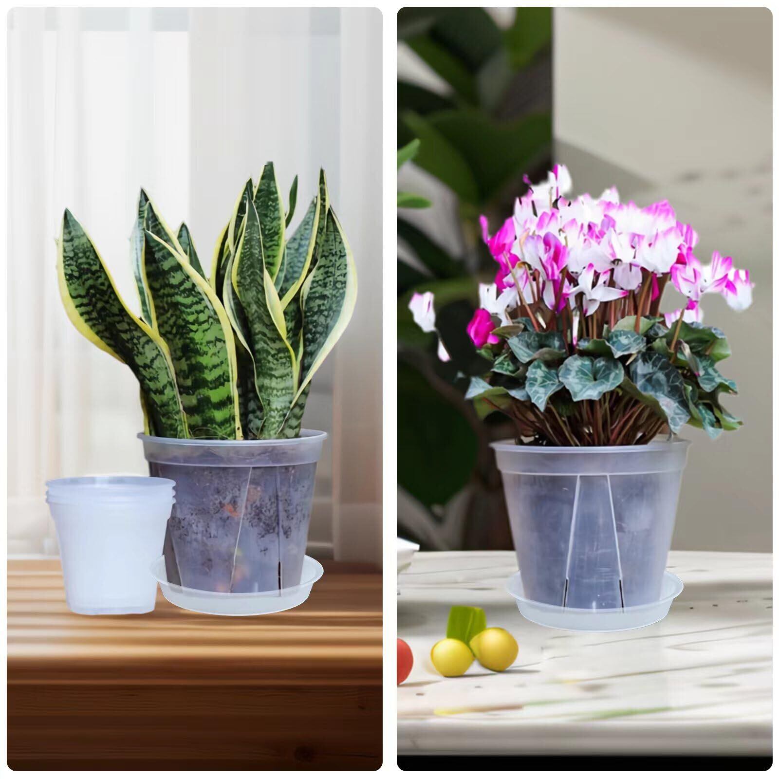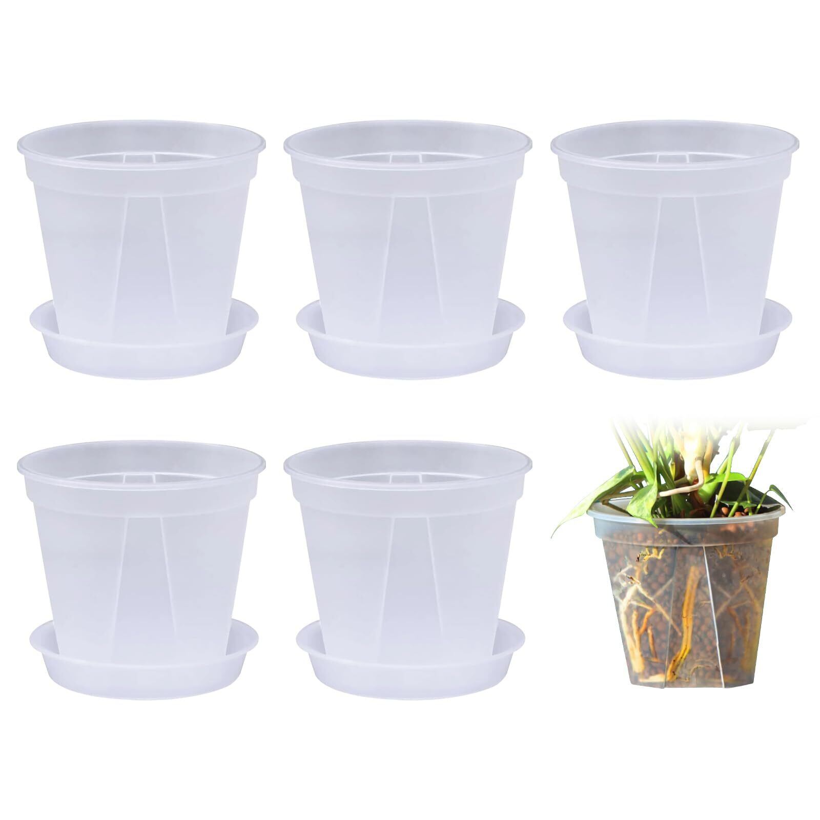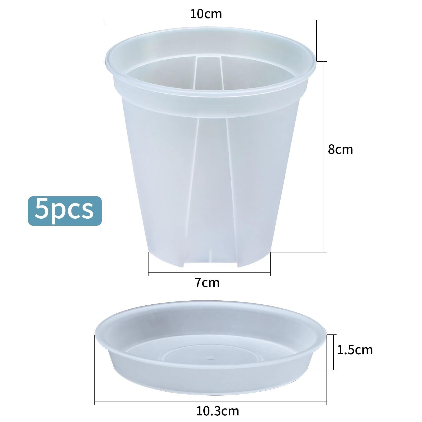 植木鉢 透明 スリット鉢 透明 5個 底皿付 盆栽 プラ鉢 プラスチック鉢 多肉植物鉢 育苗ポット胡蝶蘭 蘭鉢 透明鉢 園芸用品 屋内屋外使用のための小さい植物容器 観葉植物 鉢 (10*8cm)