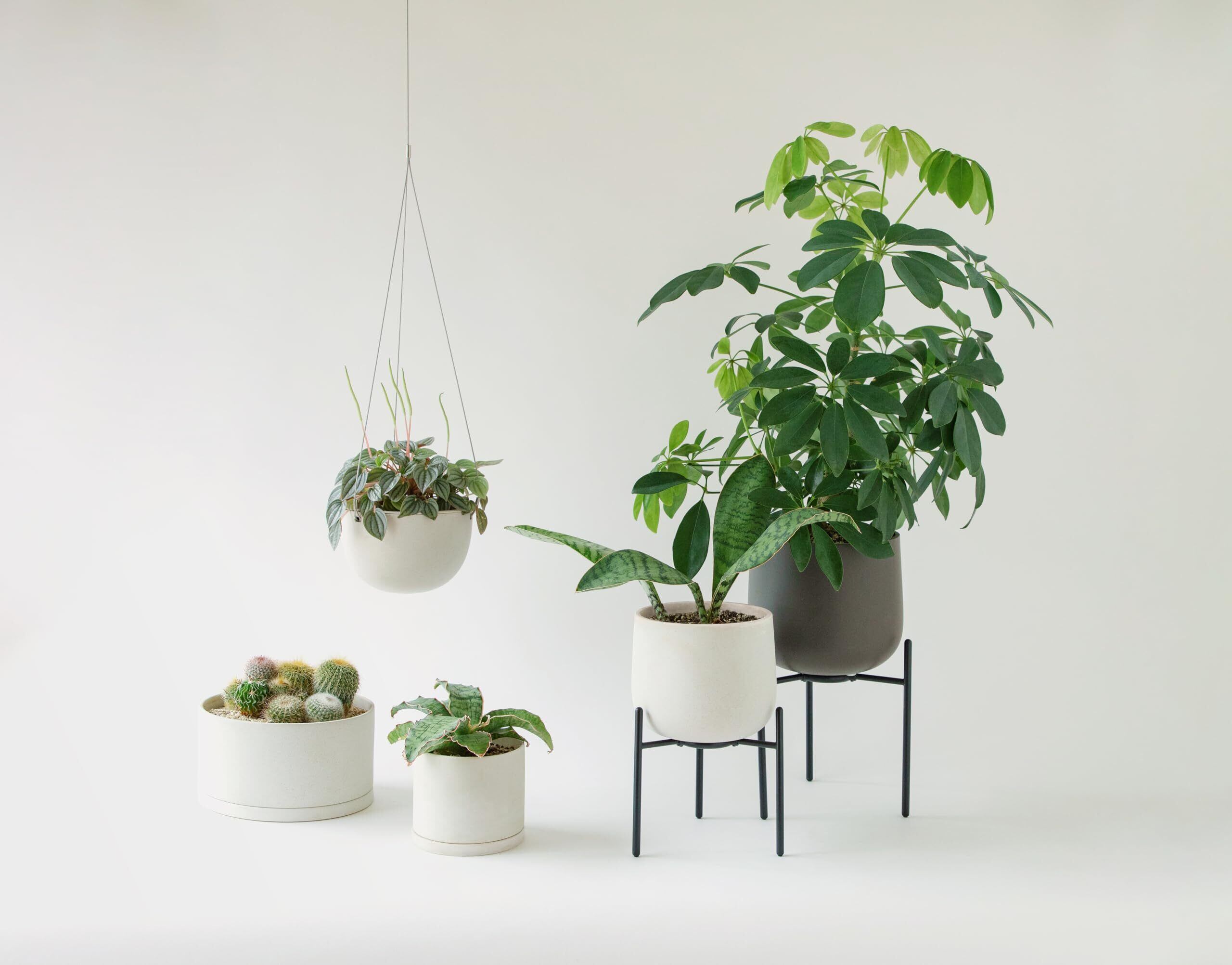 鉢と同じ直径の受け皿がセットされ、屋内でも安心して置くことができます。