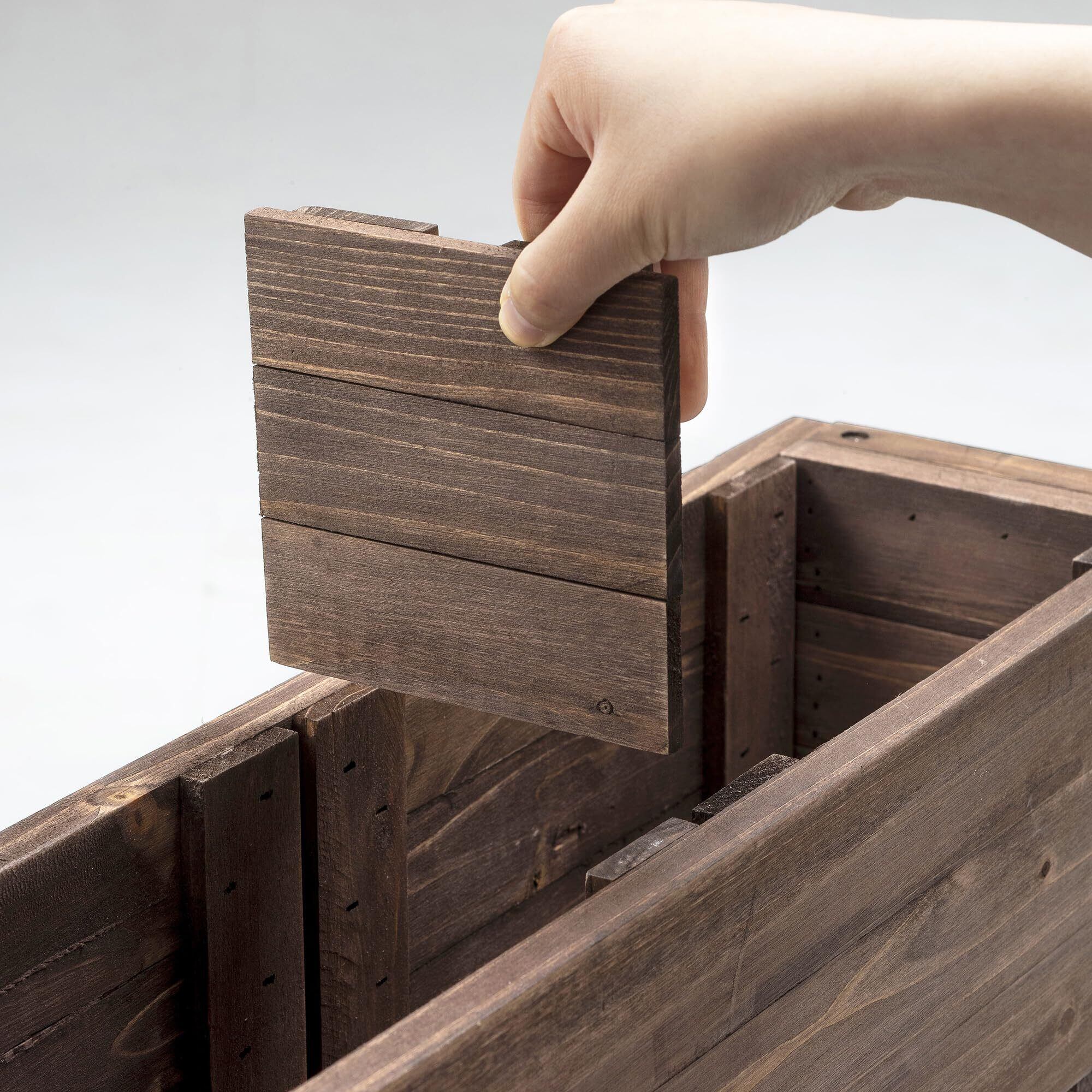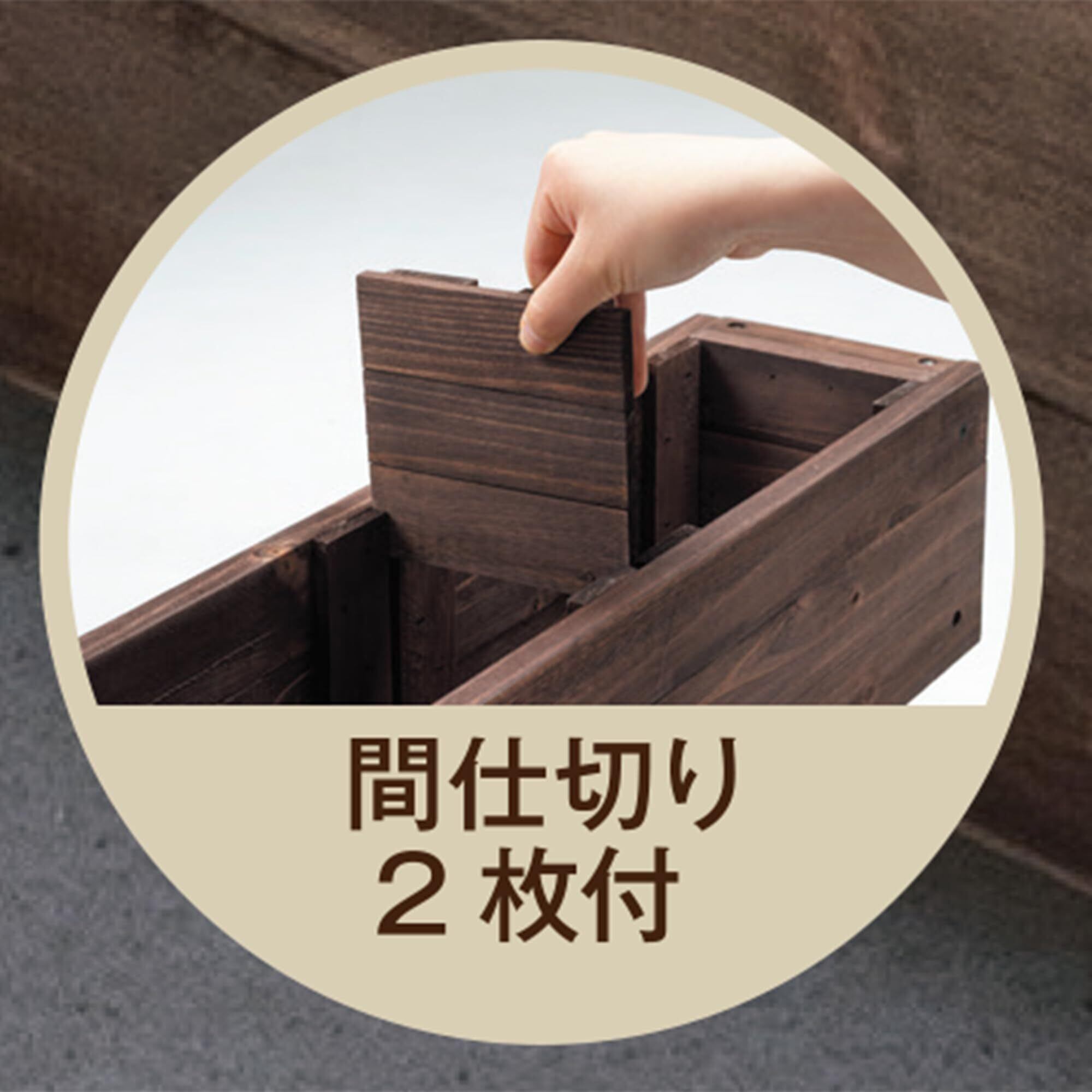 【天然木の温もり】 素材には味わい深い天然木を使用。アクリル樹脂塗装を施した落ち着いたブラウンカラーが、植物の緑を美しく引き立てます。