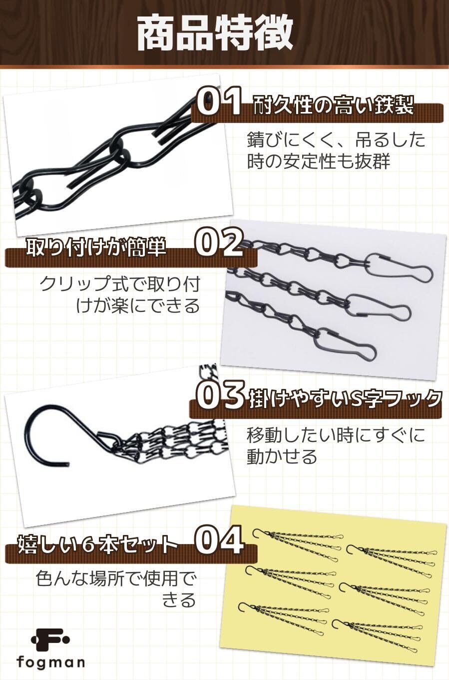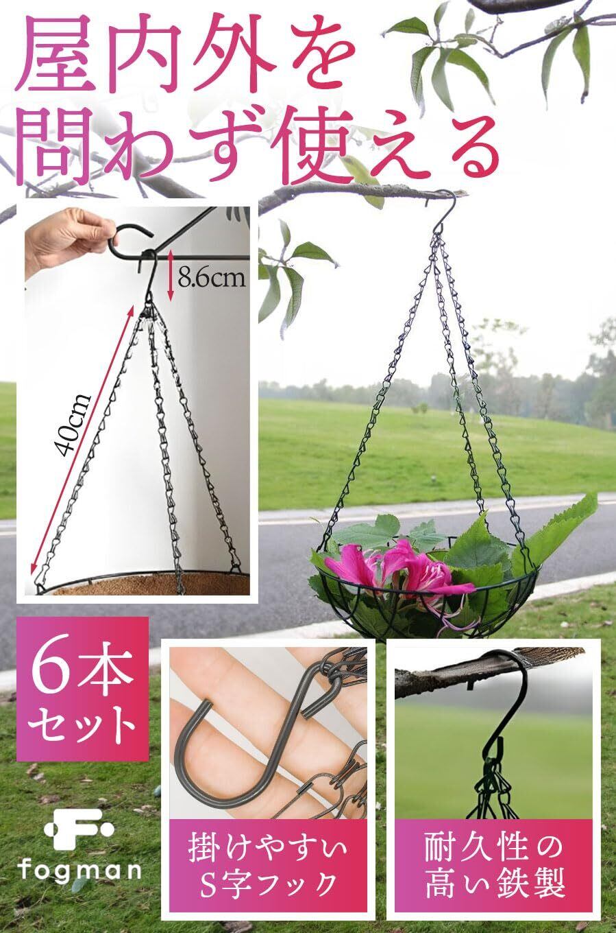 fogman バスケットチェーン 吊り下げチェーン プランター かわいい 観葉植物 6本セット