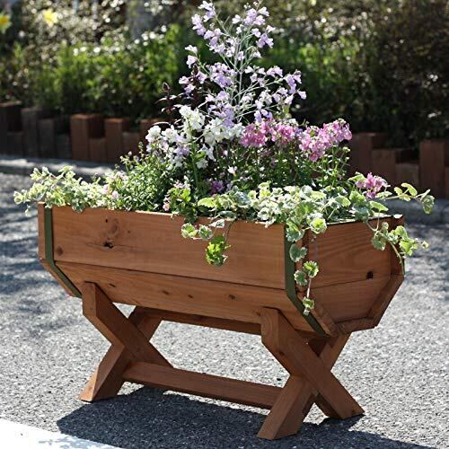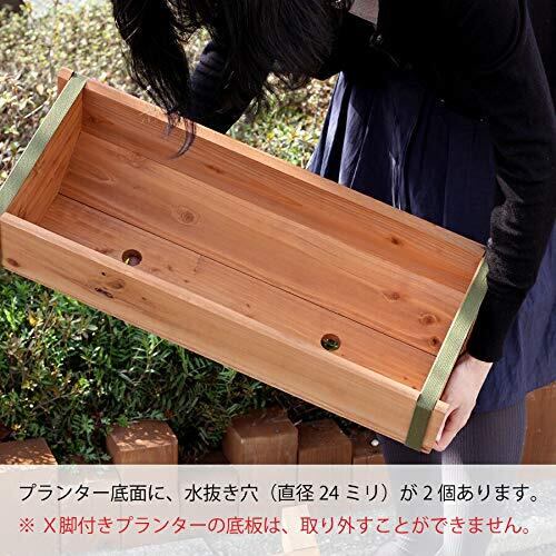 【美しさと機能性を兼ね備えた 国産杉製のX脚付きプランター】 X型のスタンドの上に国産杉製のプランターをのせました。 地面よりも高さがあるので、日当たりが良い位置で植物を育てることができます。 プランターと脚は分離できるので、移動も簡単。 お庭と道の区切り等「パーテーション用途」としても使えます。