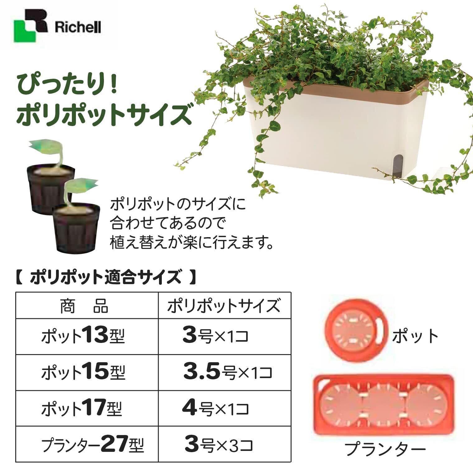 【2025最新】リッチェル 底面給水 ミエルノPlus プランター 27型N ホワイト 700979 土容量 1.4L、水容量 0.7L