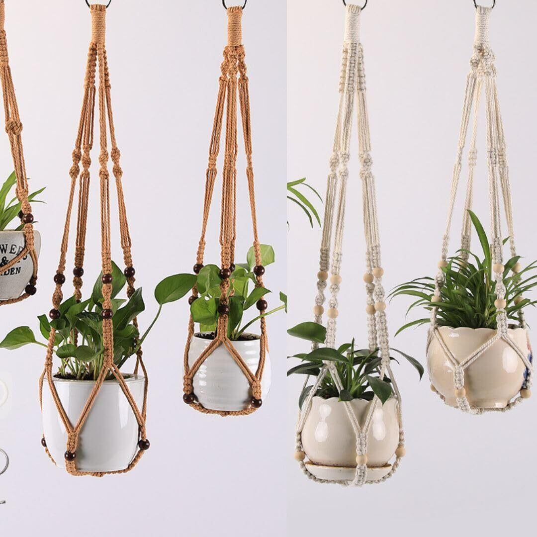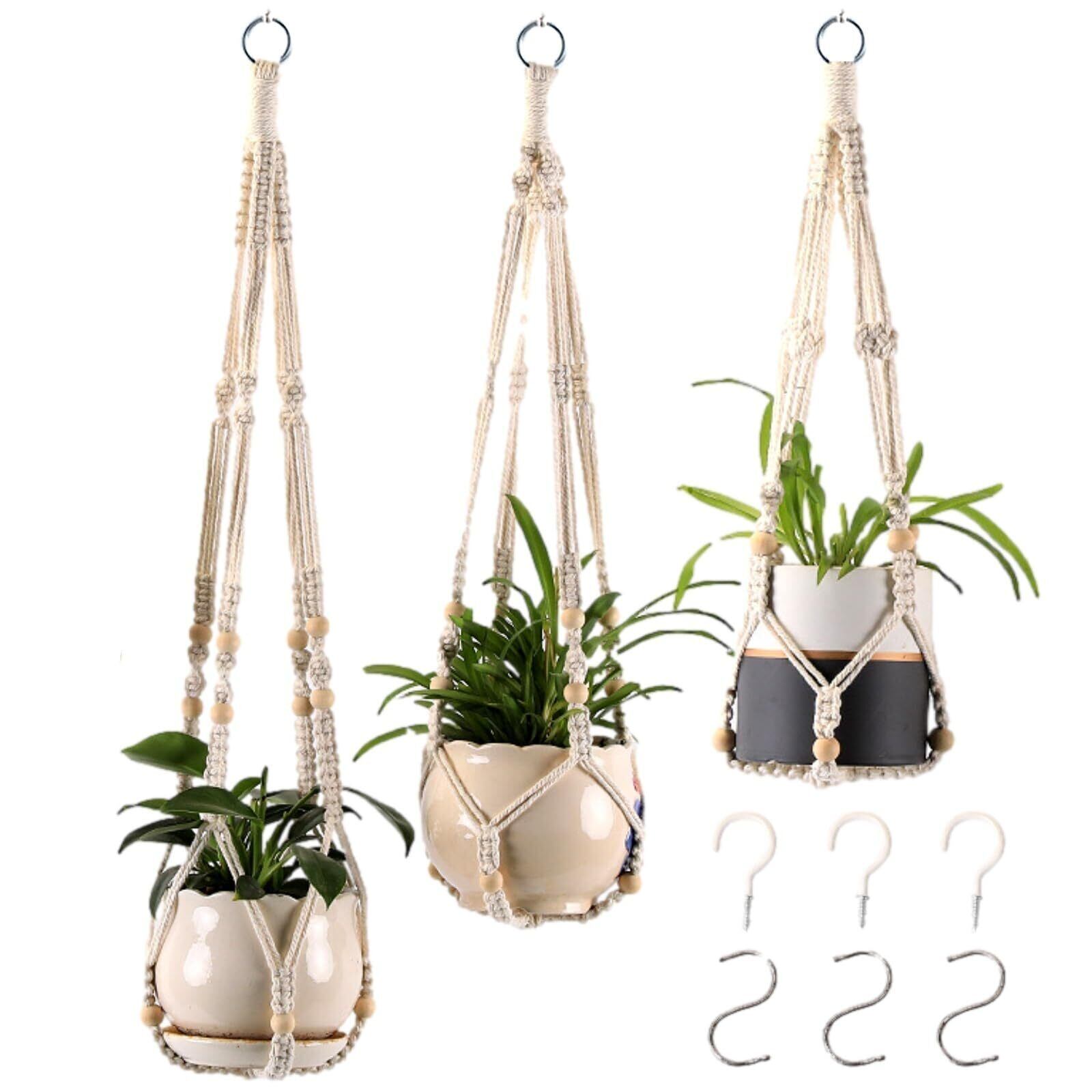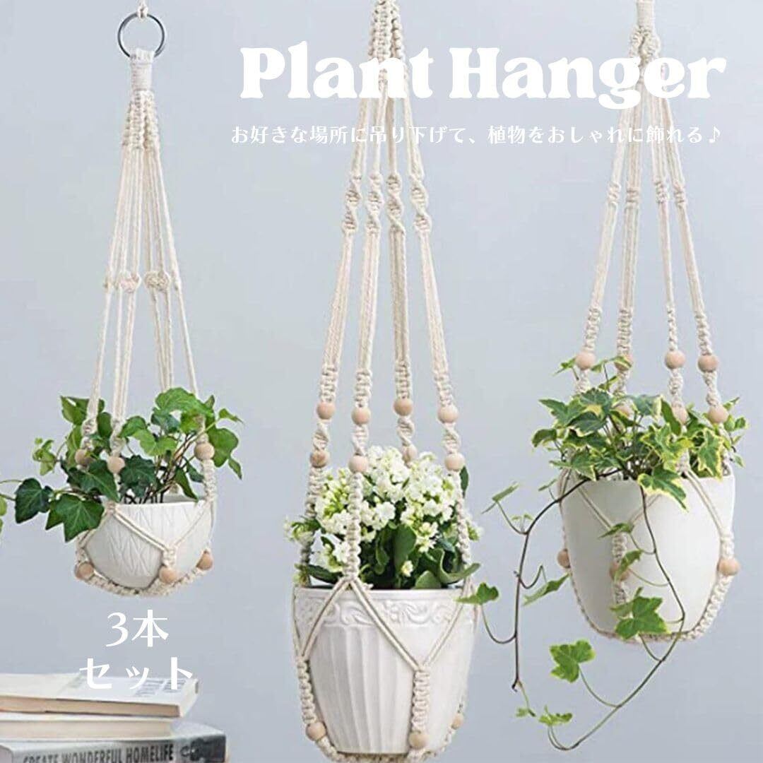 Copeflap プラントハンガー マクラメ ハンギング 吊り下げプランター 観葉植物 麻紐 3本セット (アイボリー)