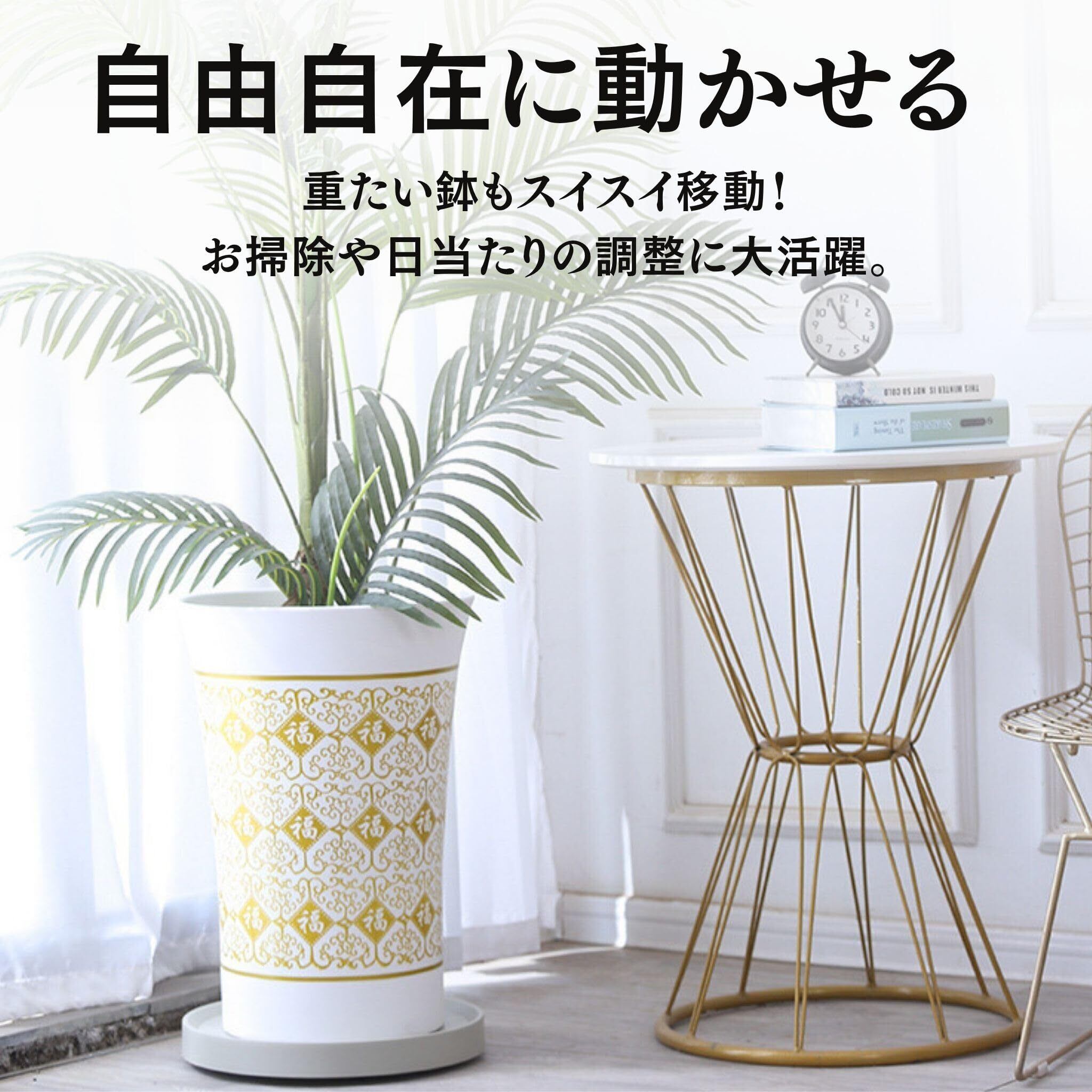 (多目的な使用と簡単な掃除機能)このプランタースタンドは、屋内外で幅広く活用できます。花や観葉植物のサポートだけでなく、重い家電製品や家具の移動にも便利です。また、静かに動作するため、マンションやアパートでの使用にも最適です。プランタースタンドには余分な水やこぼれた土を集める機能があり、植物の健康状態を維持するのに役立ちます。