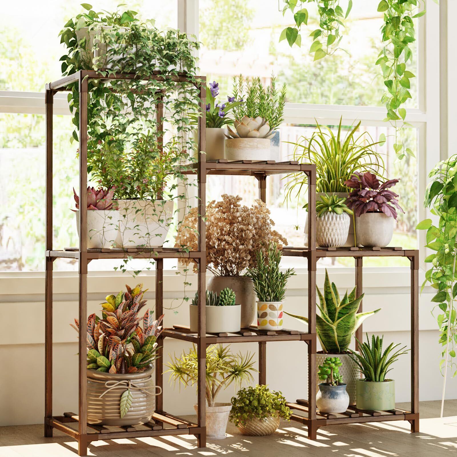 多機能活用観葉植物 棚:自然な生活空間。リビング・寝室・オフィス・バルコニー…どんな空間も活気ある楽園に変えます。この多機能プランターラックは、装飾棚や収納棚としてだけでなく、大切な植物をおしゃれに披露する場所にも最適です